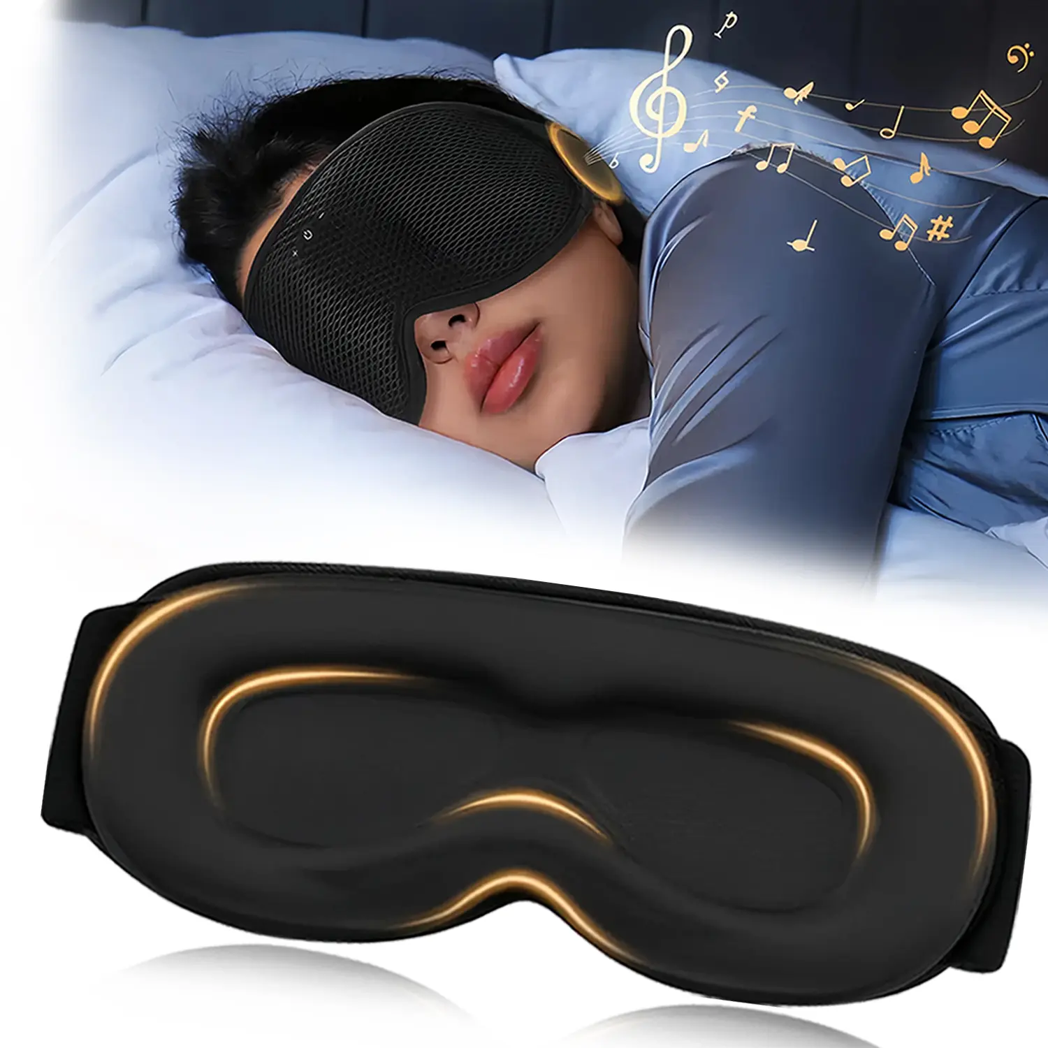 【Upgraded 3D Contour Design & No Eye Pressure】Our sleep mask with bluetooth headphones based on ergonomics.Our eyes can move freely with the 3D contoured bluetooth sleep mask. With no pressure on eyes, the bluetooth eye mask can bring you a comfortable and long-lasting sleep.The bluetooth sleep eye mask is the perfect Sleeping Headphones for side sleepers, choose sleeping bluetooth headphones, fall asleep fast, stay asleep and have a sweet dream