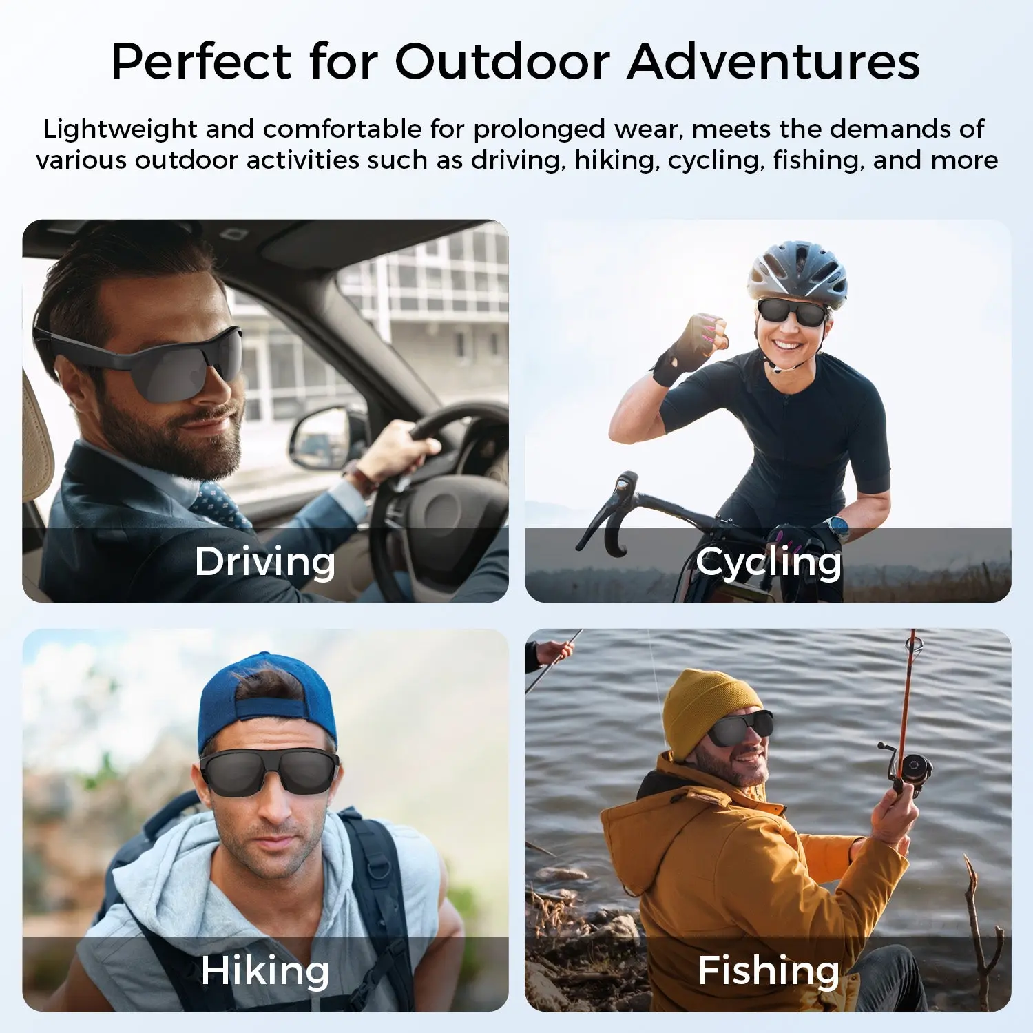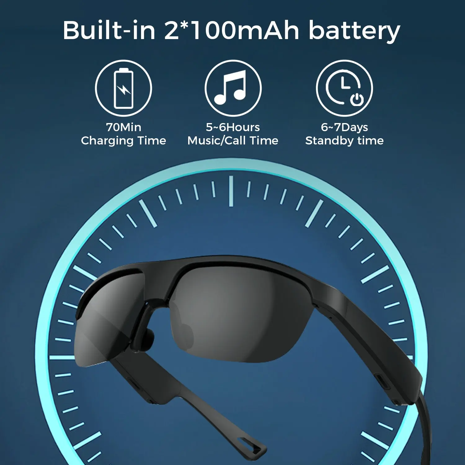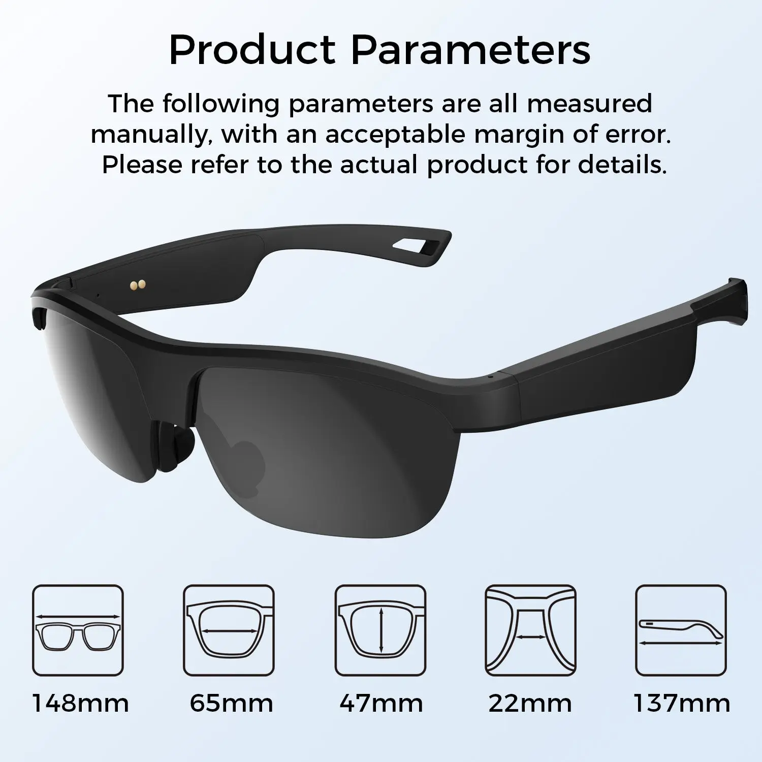 Ever wish you could jam to your favorite tunes while still hearing the world around you? The ALPHA DIGITAL Polarized Bluetooth Smart Glasses make that happen with their open-ear audio design. Whether you're jogging, cycling, or just out for a walk, these glasses keep your ears free and your music crisp with dual side speakers delivering rich 360° stereo sound. Plus, the built-in mic with CVC noise reduction means your calls stay crystal clear, even when the wind picks up. Crafted from durable TR90 and PC materials, these glasses are lightweight at just 40 grams and boast an IP65 waterproof rating, making them ideal for any outdoor adventure. The polarized UV400 lenses protect your eyes from harmful rays while reducing glare. Charging is a breeze with the magnetic cable, giving you a full 5 hours of use after just 60 minutes of charging. Inside the box, you’ll find everything you need to get started: the smart glasses, magnetic charging cable, soft pouch, lens cloth, and user manual. Ready to upgrade your outdoor experience? Slip on these smart sunglasses and enjoy music, calls, and protection all in one stylish package.