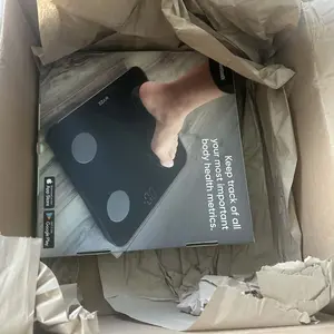 Delivered fast! Super cool scale, it tracks your weight and gives you details on the app. You can also weigh your pets on it too! Comes with batteries
