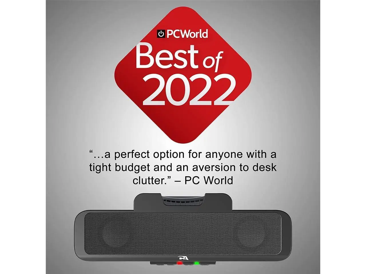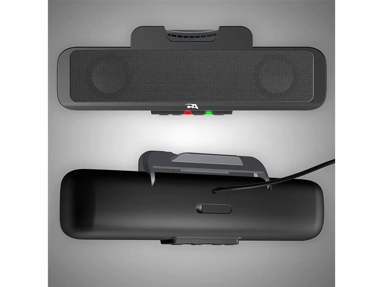 ·USB Powered Speaker with Bluetooth - Connection to PC, Mac or Chromebook with a single USB cable and simultaneously connect to your smartphone with Bluetooth 5.0. No need to take up valuable workspace, speaker conveniently attaches to the bottom of your monitor with easily accessible controls that include a multi-function button for simple switching between USB and Bluetooth, play/pause, volume up and down, and mic mute with LED indicator.Multi-Purpose Use - The CA-2890BT offers simultaneous connection to PC or Mac via USB and to smartphones via Bluetooth, making it flexible for hands-free calls on your phone, or for meetings on Zoom, Teams, Google Meet, Skype, or any other chat platform. Switching between USB and Bluetooth is simple and can be done with the push of a button. A great way to give your ears a break from headphones.Surprisingly Loud Sound - Also great for music or movies, this small speaker is an audio upgrade that produces surprisingly loud sound via a unique design that lifts and projects sound forward for a better stereo experience.Easy to Use - Ideal for small desks or minimalist setups the CA-2890BT is plug-and-play, no installation needed. Included USB A to USB C converter for your convenience to connect to newer laptops with limited or no USB A ports.