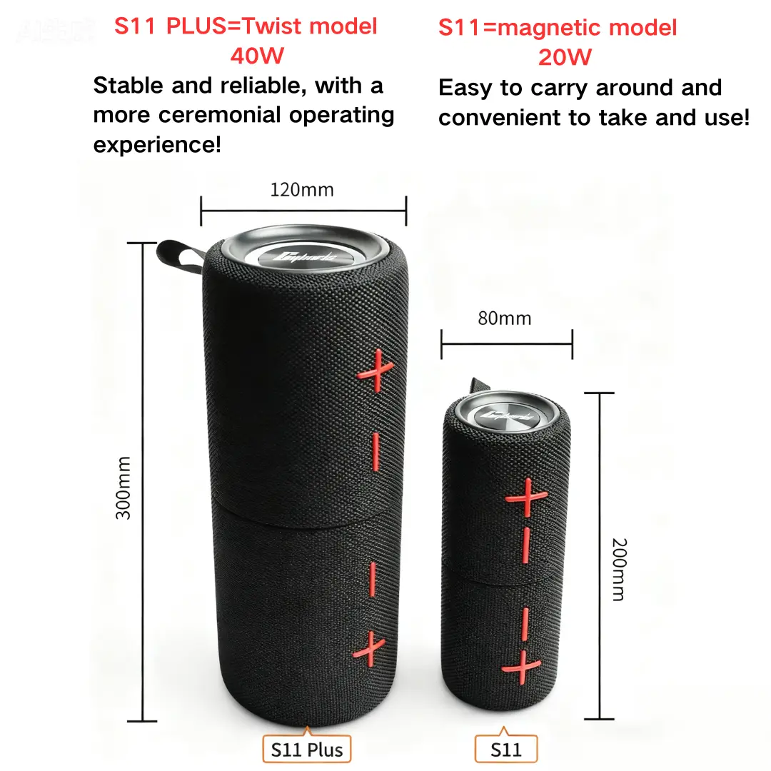 2. Press and hold the + - button of one of the speakers for 3 seconds, and you will hear a prompt tone, which means that the two speakers have been manually disconnected from the Internet.At this time, open the Bluetooth search of the mobile phone, and you can see the Bluetooth pairing names of the two S11s, so that they can be linked separately and used independently.