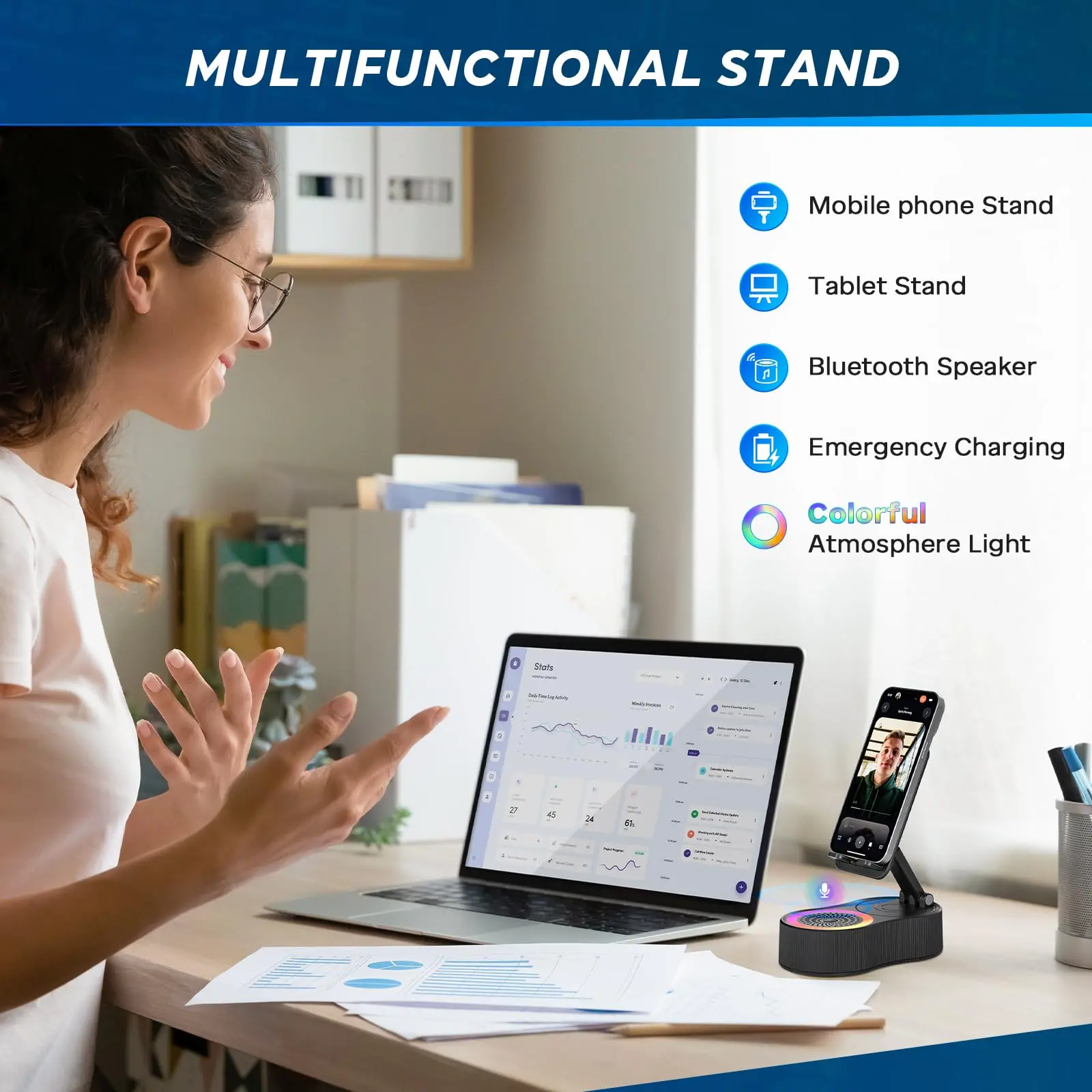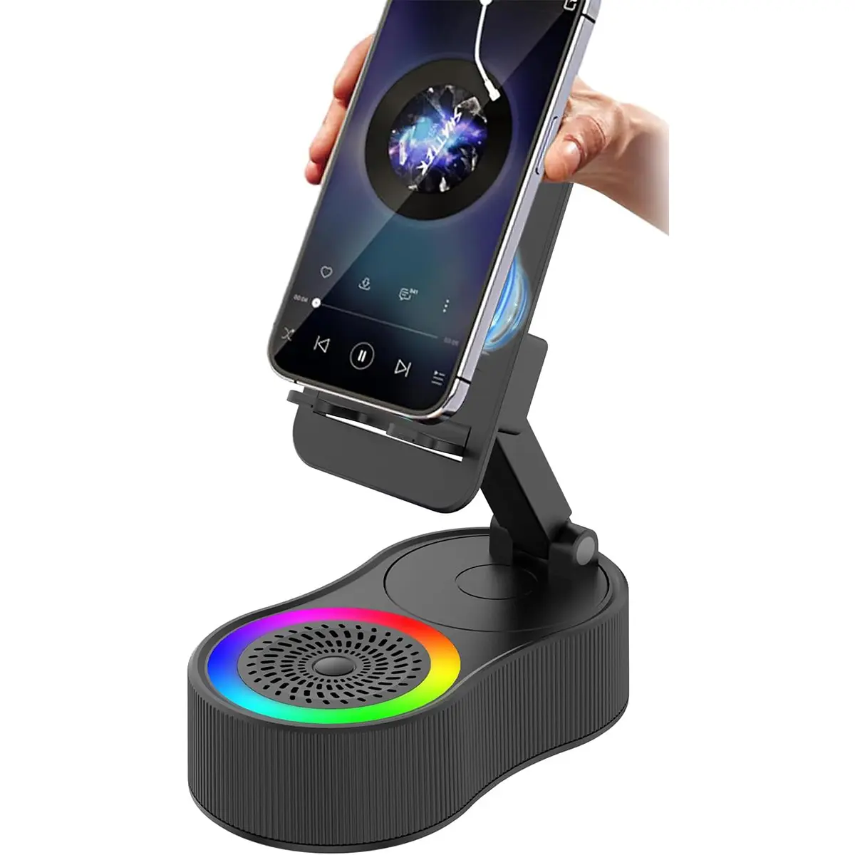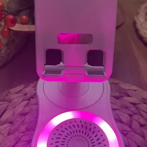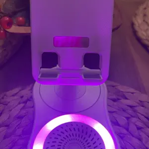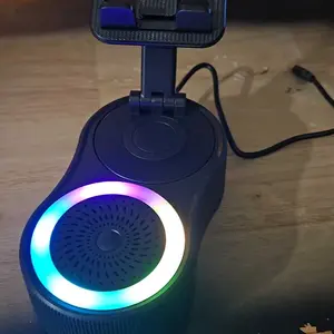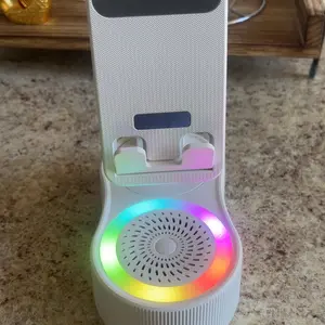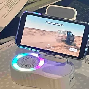 Enhance your audio experience with this innovative speaker! It combines a wireless induction speaker, Bluetooth speaker, charging cell phone stand, and ambient light. The 5-in-1 design offers versatility for various devices. High-definition stereo sound ensures a stunning audio experience. Perfect for tablets, iPhones, Androids, and smartphones.