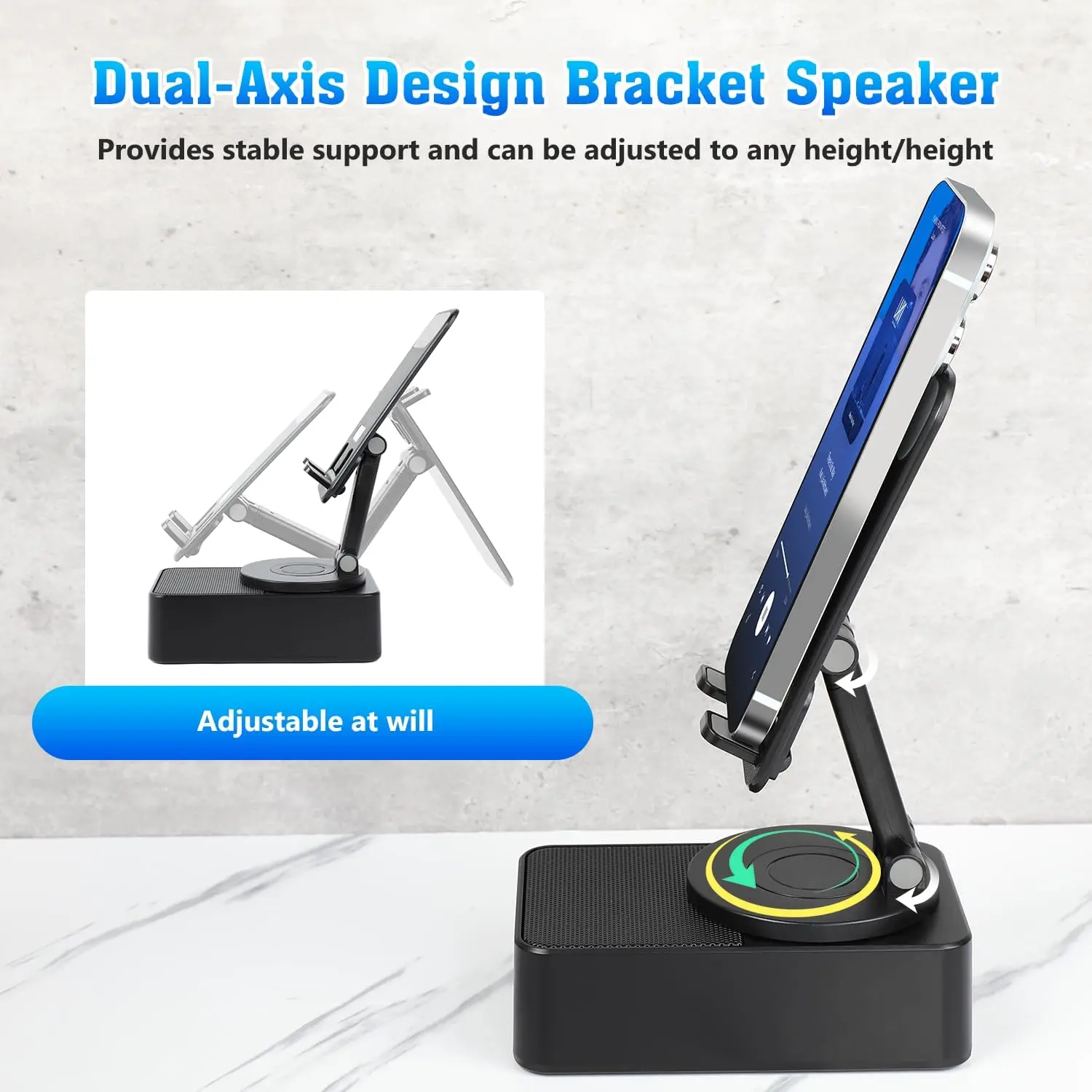 ·This speaker doubles as a multi-function phone stand, making it a convenient addition to your desk. Stay connected and entertained simultaneously. 📱