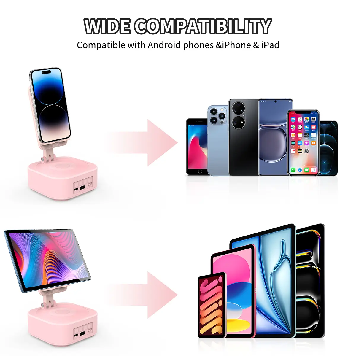 The stand adjusts multiple angles and rotates 360°, meeting diverse viewing needs. Enjoy gaming, videos, and Facetime without worrying about hand placement. The foldable design allows for easy storage and portability, ensuring convenience wherever you go.