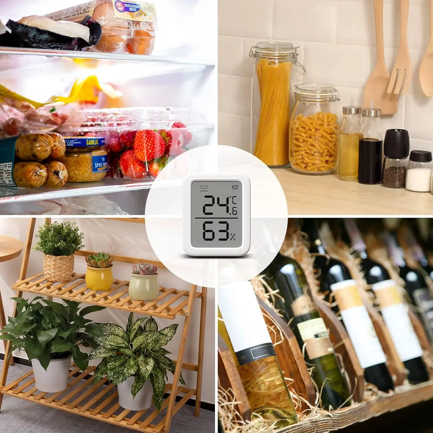 More Accurate Readings - Our indoor thermometer includes a built-in Swiss-made sensor that gives you more accurate temperature and humidity readings in both Celsius and Fahrenheit.It changes in humidity and temperature are reported 10x per second, maintaining ±0.2°C/±0.4°F accuracy in temperature -20°C~80°C (-4°F~176°F) and ±2%RH accuracy in humidity 0~99%RH.Includes an Even Bigger Screen - You can now see your data even clearer with a 3-inch bold display, making it easier to use your humidity meter to read temperature data at all times.You can also check to see if your room conditions meet your custom set parameters using vivid icons on our screen.Exportable Data - 394ft connecting distance (no obstacles) allows you to quickly and clearly view the temperature and humidity yearly, monthly, daily, or by the hour.Enjoy up to 68 days On-board Data Storage and up to 2 years In-App Data Storage(Unlimited cloud storage if SwitchBot Hub is added).Data can be exported as.csv file for more in-depth analysis of your environmental.Supports multiple methods of data calibration.Push Notifications (SwitchBot Hub required) - Our hygrometer now supports Dewpoint, and VPD readings with absolute humidity as well as classic temperature and humidity readings that can be used as Scene conditions.You’ll receive a notification from anywhere, aware of the changes in your cellar, basement, etc.Via your phone.Use Anywhere - Place our thermometer anywhere, it's great for wine cellars, greenhouses, kitchens, and more.You can even attach it to walls, magnetic surfaces, or stand it upright on tables in 3 angles.