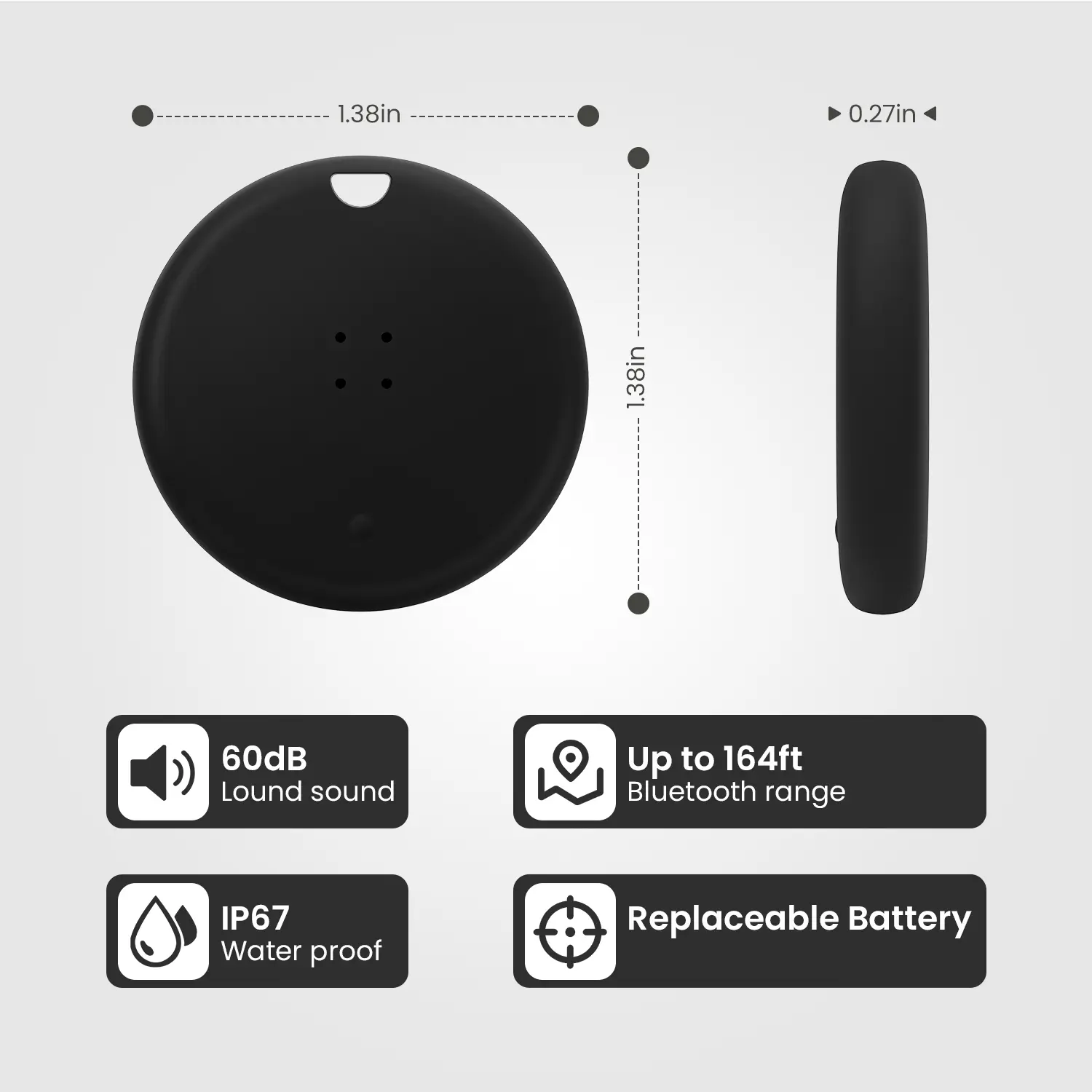·IP67 Water and Dust Resistant, Replaceable Batteries: Designed for outdoor adventures, this item locator is rainproof to ensure your peace of mind in all weather conditions. It also comes with a replaceable CR2032 battery that lasts up to 2 years.