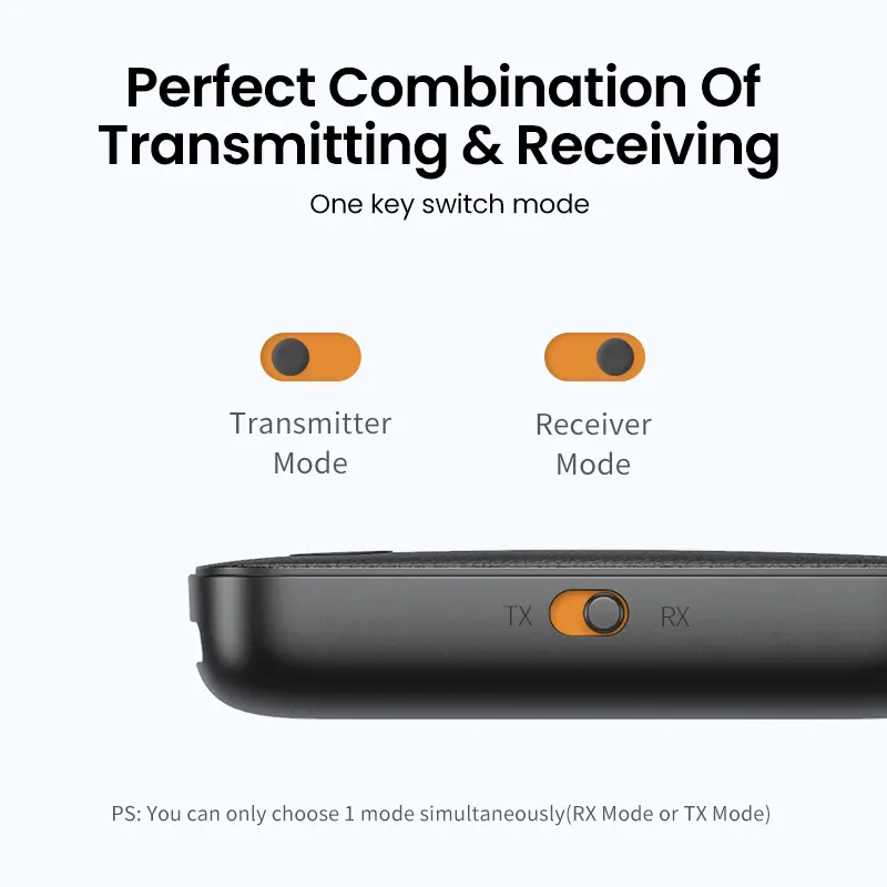 ·8H Battery Life & Dual Pairing: This Bluetooth adapter offers up to 8 hours of stable transfer in TX mode and 5.5 hours in RX mode, ensuring long-lasting performance. It can pair with two devices simultaneously, making it easier to share music with companions while airplane travel. Additionally, it has a built-in microphone for easy call answering and hanging up without disconnecting. (Note: Calls are only supported in RX mode.)