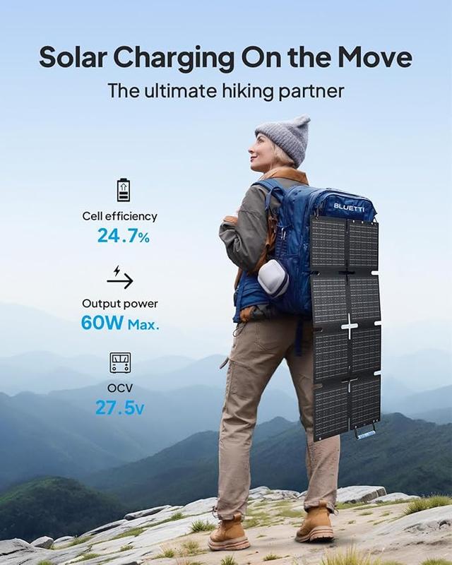 Designed to charge your devices efficiently while you're on the go, the PV60F is your perfect pal for outdoor adventures. With a lightweight build, durable ETFE material, and IP65 splash resistance, it ensures everlasting power supply through your journey.