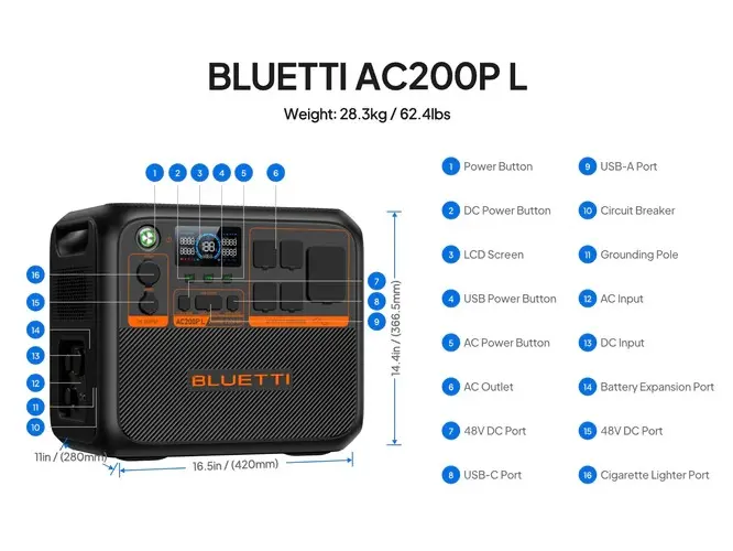 The AC200P L delivers 2,400W rated power, covering most loads in your RV or at home.