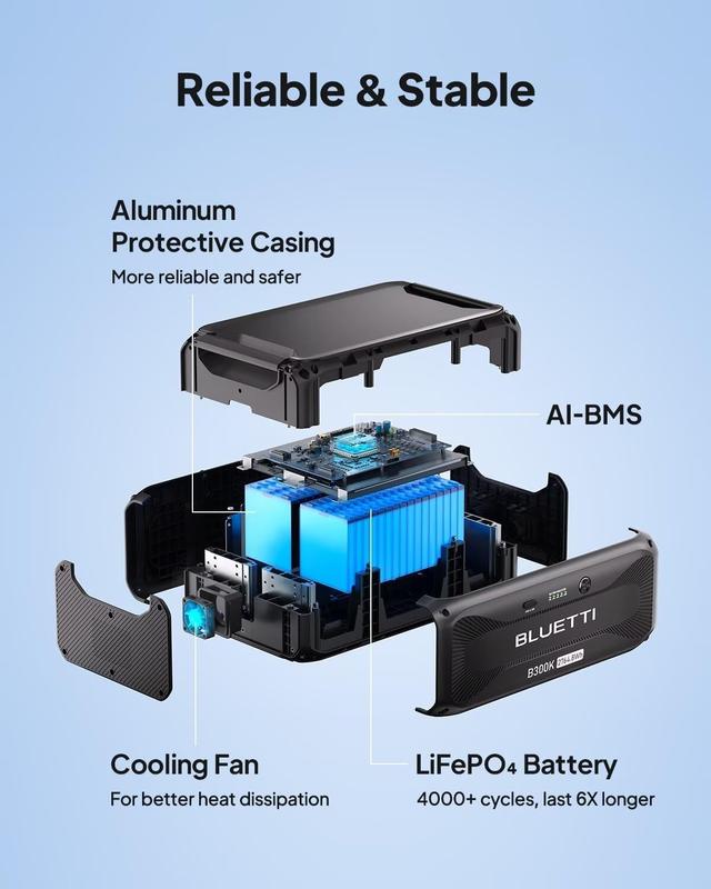 ·[Support Mix Use] - Combine the B300K with other BLUETTI batteries like the B300, B300S, B230, and B210 for a seamless upgrade to your setup. For example, AC500 + B300S + B300K = 5,836.8Wh.