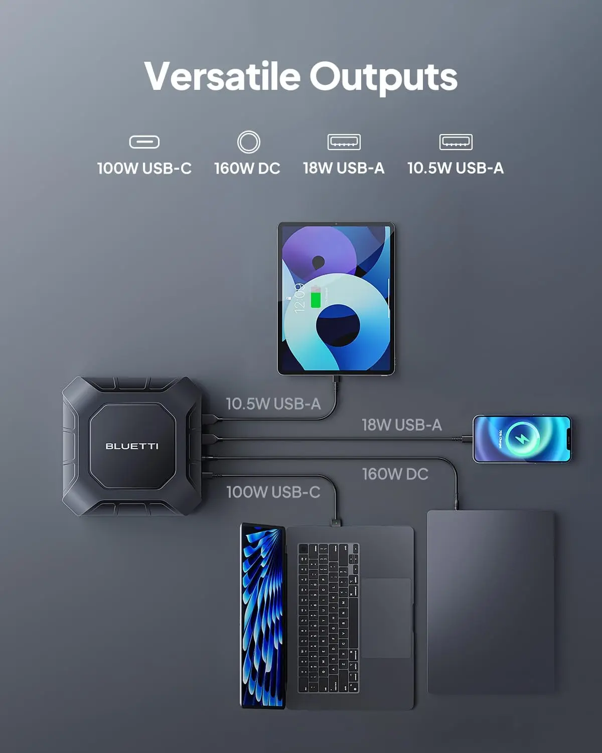 ·[Laptop Companion] - Equipped with 12 connectors, this X20 supports 90% of laptops. Enjoy simultaneous charging with 160W DC and dual 100W USB-C ports for all your devices!