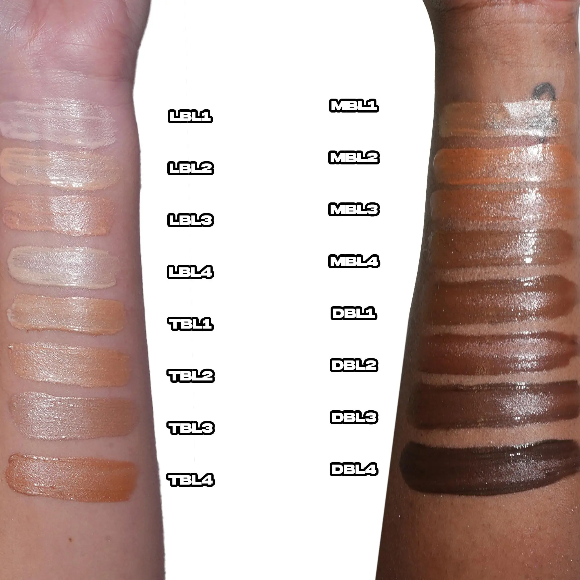 This is a beautiful product! It's truly luminous as it states and is so smooth to blend out. This provides sheer/light coverage, but I feel it could be buildable if you wanted to wear it alone. It may be hard to tell, but in good lighting, I can see the pearlescence to it. Shade: mbl1