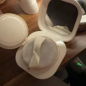 Press the puff lightly and evenly over the silicone mesh to dispense powder. Work the powder into the puff by folding and rubbing the halves together. Gently press the puff onto skin, using a rolling motion to work the powder in.
