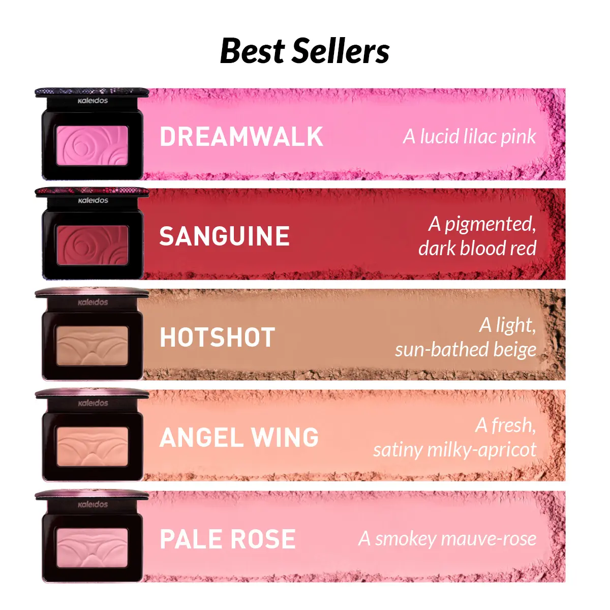 A vibrant, blendable powder blush that melts into skin with a silky finish, delivering a buildable flush that blurs and smooths with dreamy depth. This blush creates a soft-matte bloom with a bold, romantic edge.