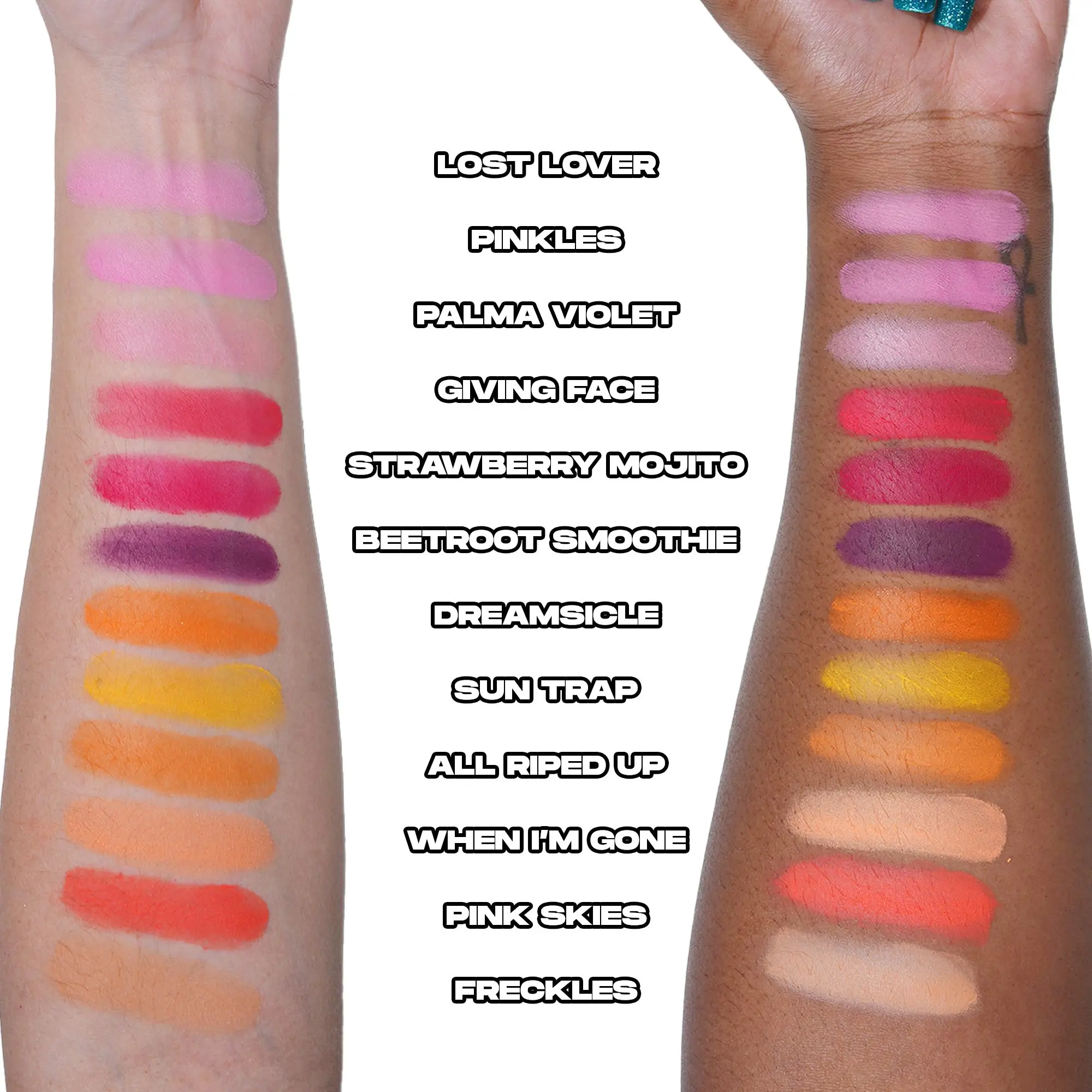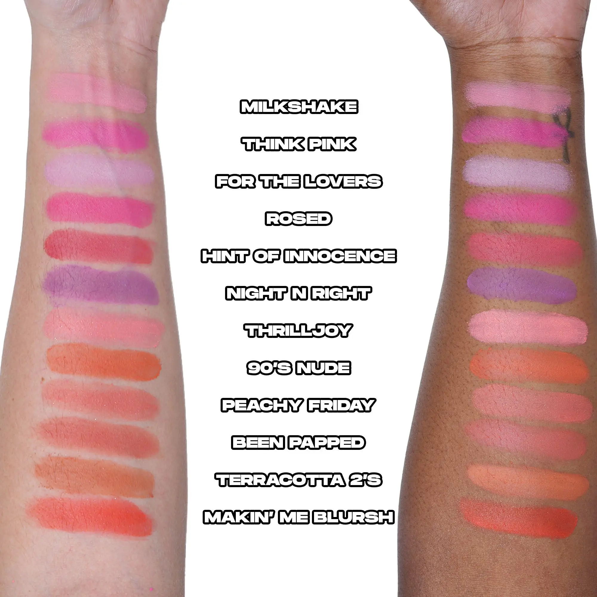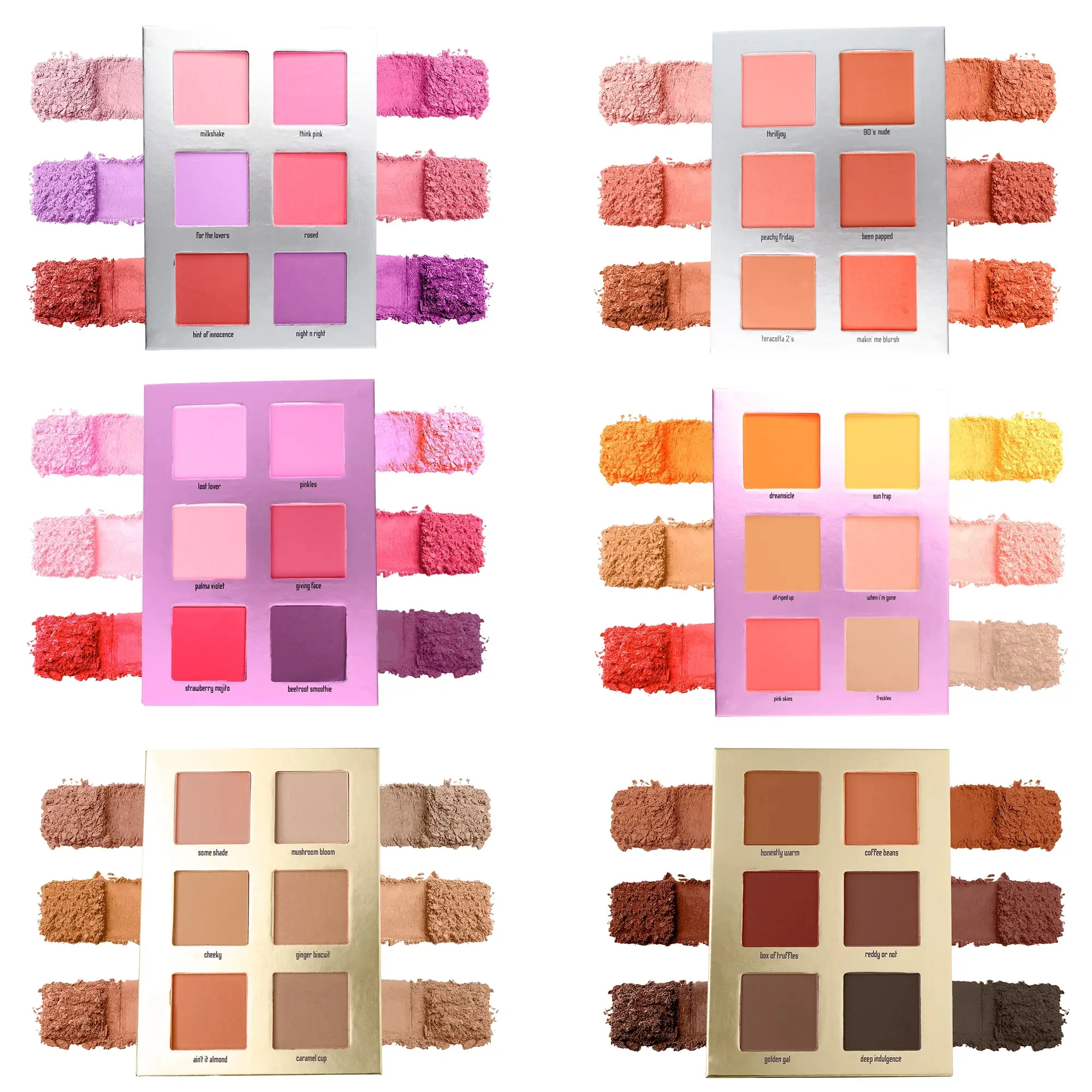 Beautiful pinks, purples, nudes and peach tones in this blush pallet A MUST HAVE. They’re pigmented buildable and buttery soft. You’ll thank me later GET THEM your welcome
