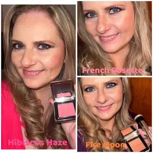 Fire Moon isn’t a color I would normally buy but I was pleasantly surprised by how much I liked it. I feel like it could be used as a bronzer and/or as a blonzer (blush and bronzer). French Rosette is actually a new favorite of mine! French Rosette and Hibiscus Haze are my new go to colors!