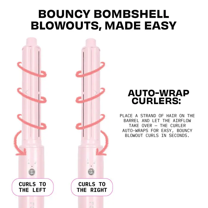 ·Auto-Wrap Curlers (1.18”): For the perfect bouncy blowout with loose curls and big volume — hair is gently wrapped around the barrel for effortless curls in seconds.