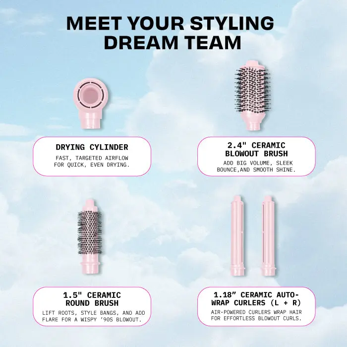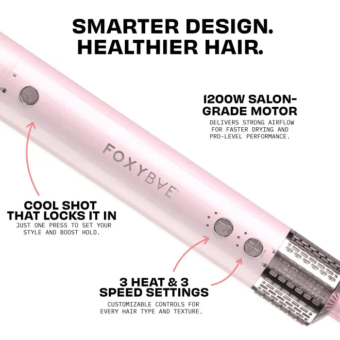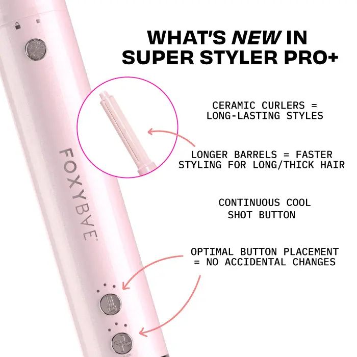 Meet the Super Styler Pro+ — your upgraded 5-in-1 multitasker that dries, curls, volumizes, smooths, and slays — all with less damage and way more staying power. Now sleeker and slimmer (hello shimmer), this styling powerhouse features salon-strength airflow, a continuous cool shot, and longer ceramic-coated auto-wrap barrels for even smoother, longer-lasting styles. Whether you’re going for a sleek, voluminous finish or full-glam bounce, it’s your all-in-one secret to styling smarter, not harder.