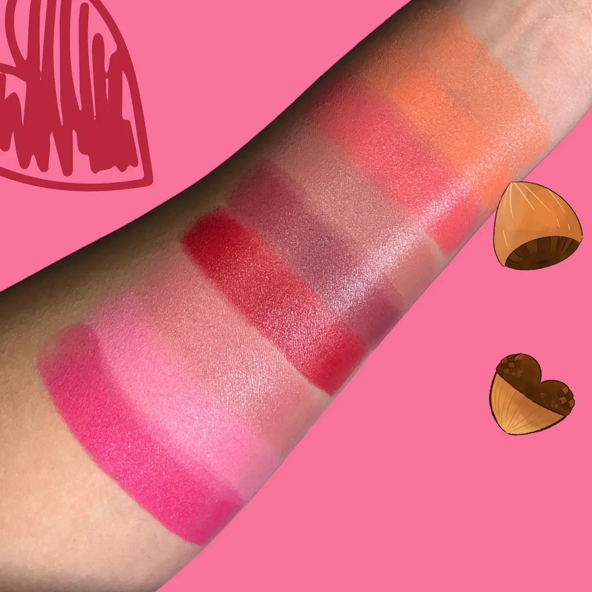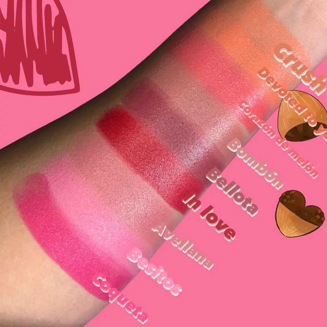 Love the shades I choose, on the right is Avellana and on the left is Devoted to you. The formula is creamy and super pigmented. The packaging is sooo cute!! Would love to see more shades like purple or deeper orange.