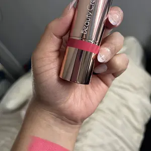 This color is like neon chalky pink on skin it was shown on light skin looks different in person maybe this is for dark skin also didn’t like the chalky feeling of this not creamy it goes on dry and matte