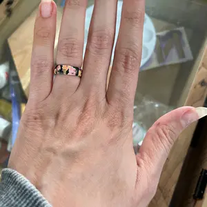 Absolutely LOVE this ring!! It is so feminine and the contrast of the black with the florals is perfect. I feel so pretty when I wear it 🥰! I wear a 5.75 and bought a 6 and it is a perfect fit as well.