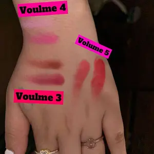 Nice warm redish orange swatched one side with volume 5 and the other with 6. These 1 sided images are volume 6.These are perfect for eye shadow too