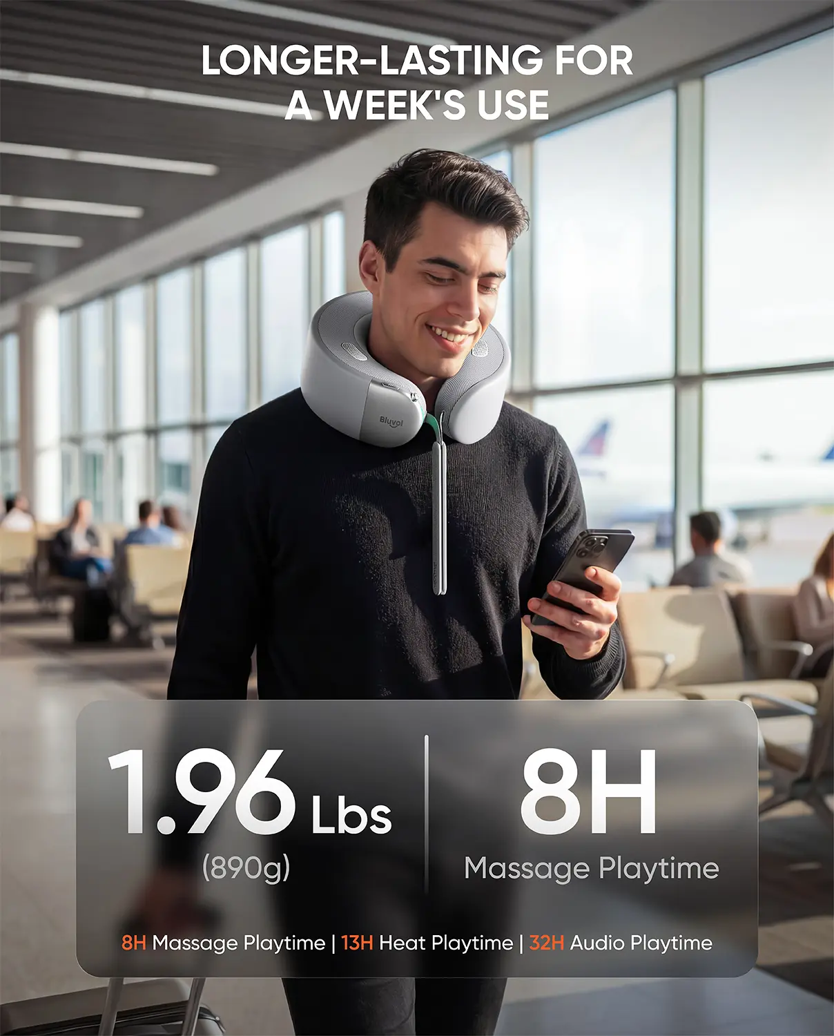·All-Day Battery & Ultra-Light ComfortThe 3500mAh battery supports up to 8 hours of use, and at only 890g, this lightweight, cordless design is portable for all-day comfort.