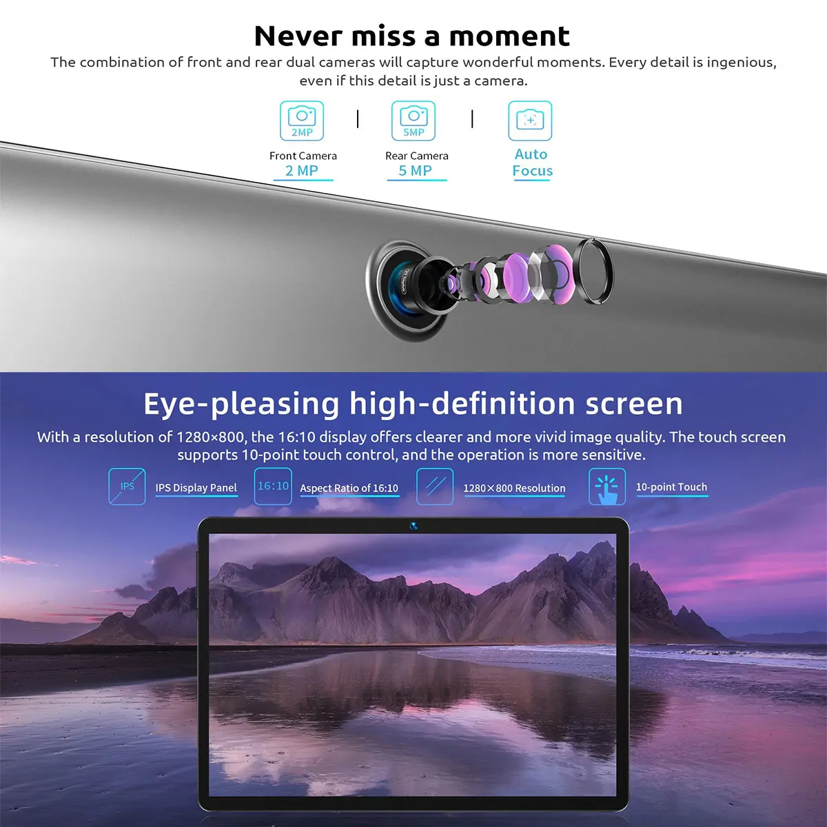 Featuring 1280 × 800 resolution and a 16:10 aspect ratio for rich colors and wide viewing. Supports 10-point touch for precise and responsive control.