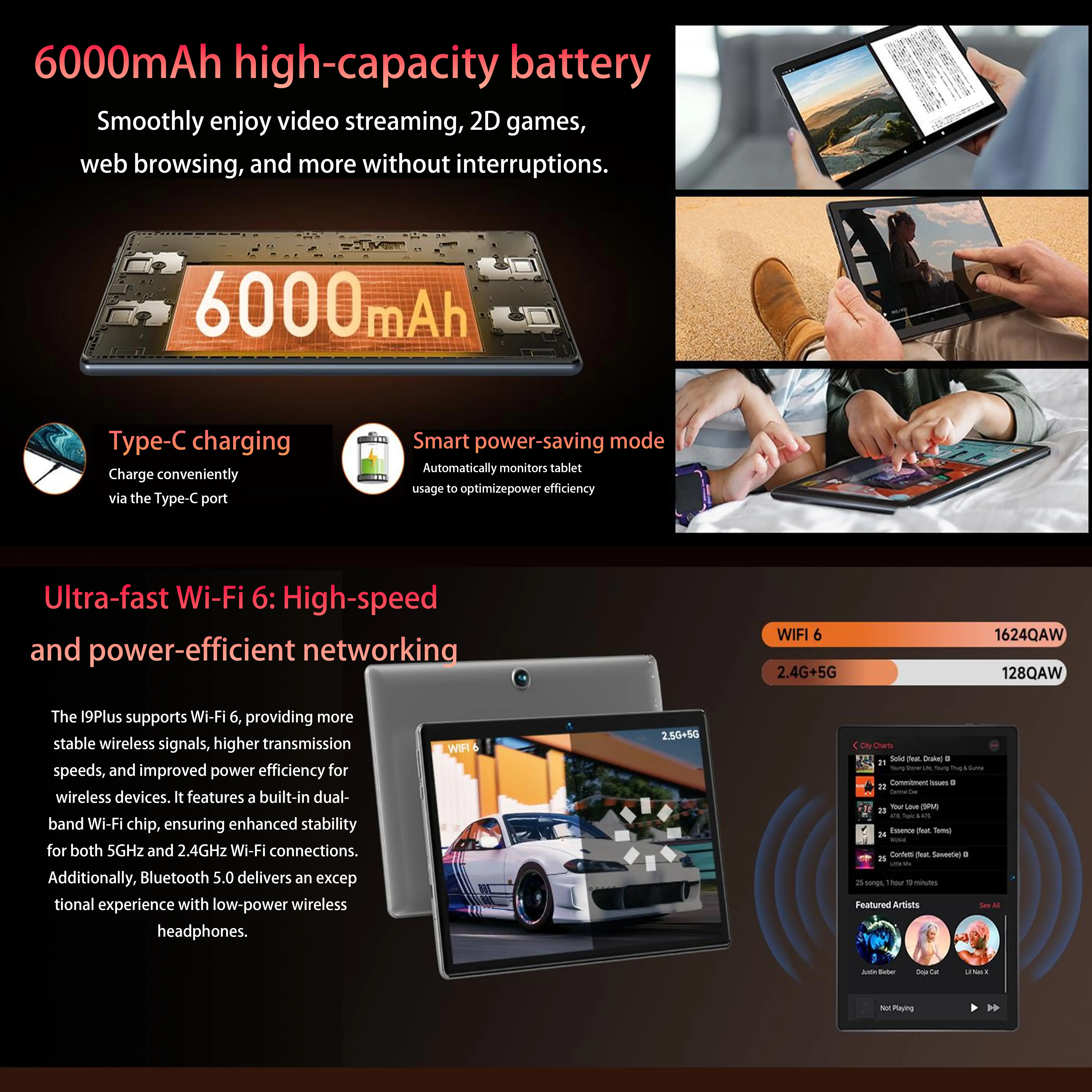 Includes an 18W charging cable and adapter for quick power-ups. Enjoy up to 5 hours of continuous 1080P video playback—ideal for worry-free streaming and light gaming.