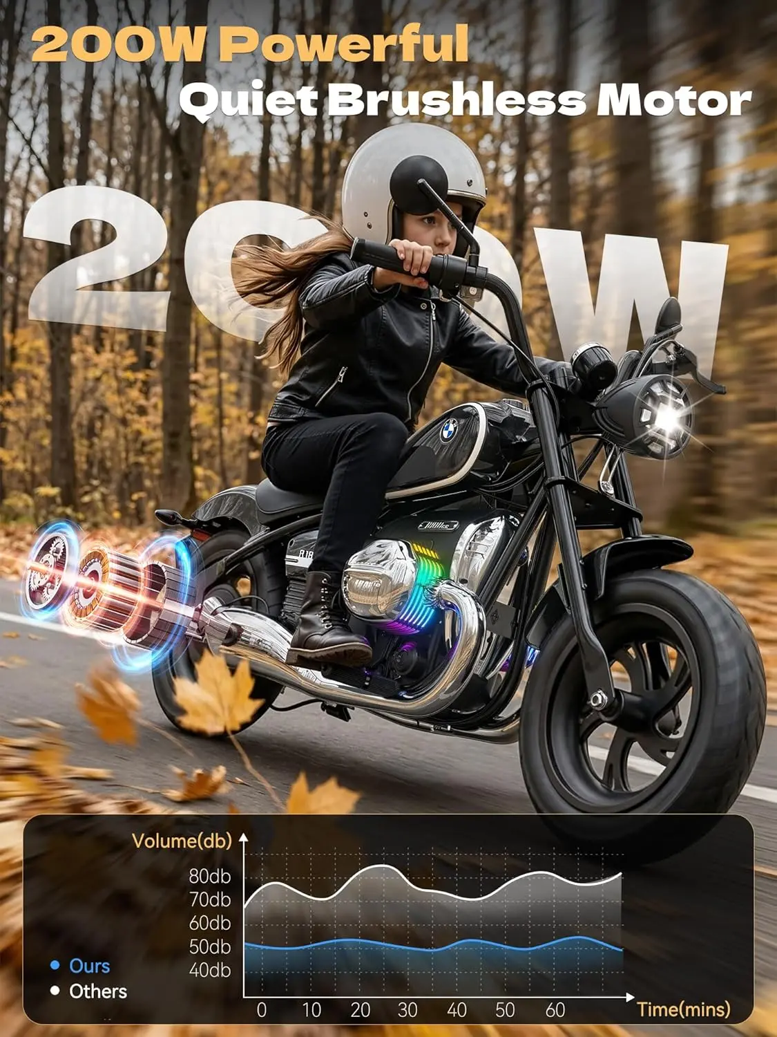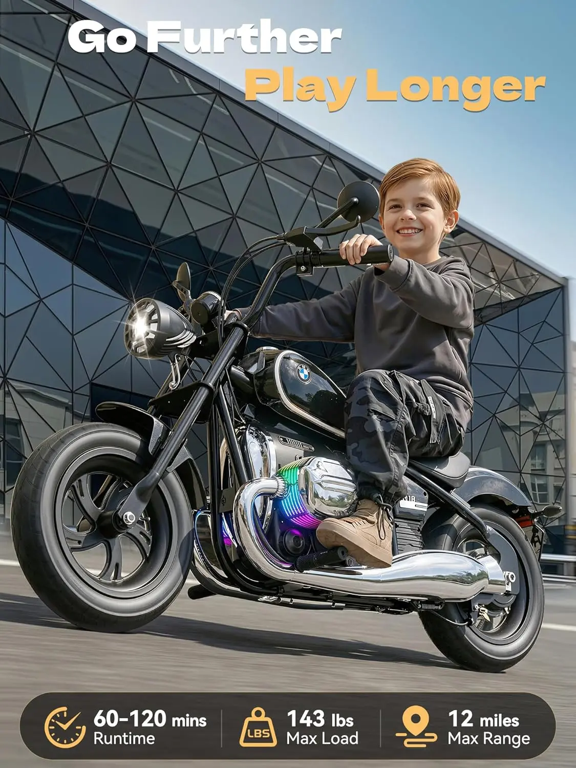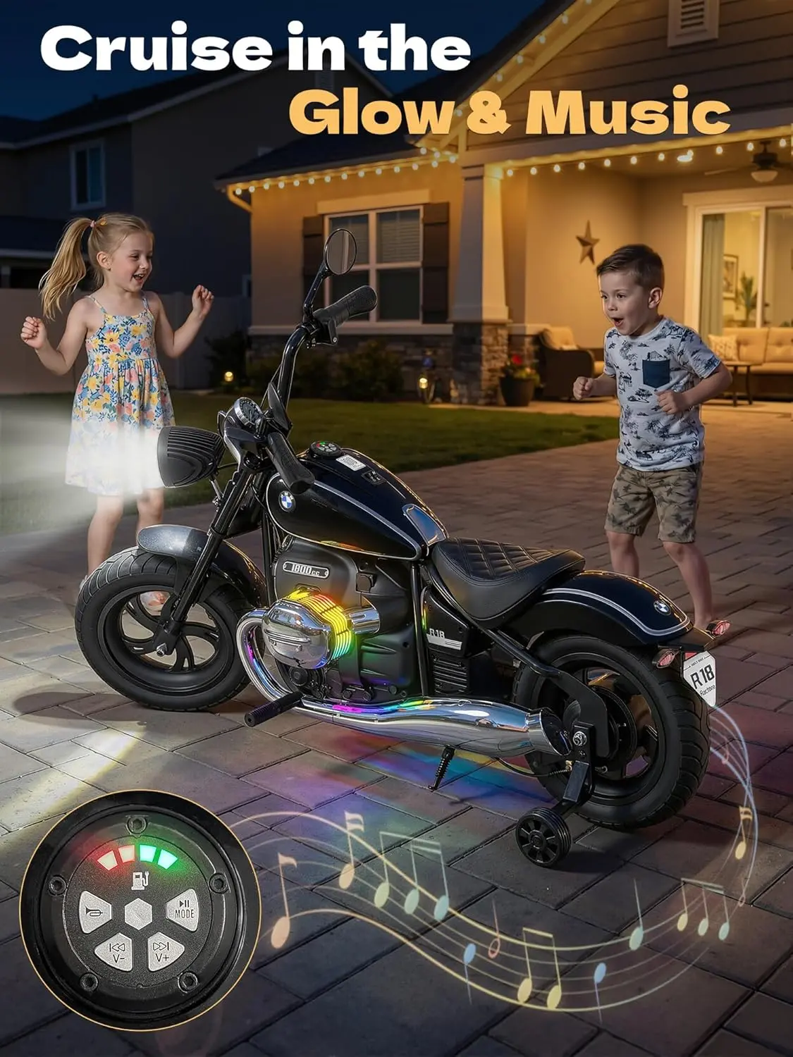·First 24V BMW Licensed Electric Motorcycle: This adorable replica captures the soulful design of the classic BMW R18, blending timeless classic design with quintessential coolness. As the market's first 24V officially BMW-licensed kids' electric motorcycle, its power and functionality are significantly improved compared to the standard 6V models. With its refined motor and steady handling, young riders aged 3-14 that under 5 feet can cruise with confidence, turning every trip to the neighborhood sidewalks into a head-turning event