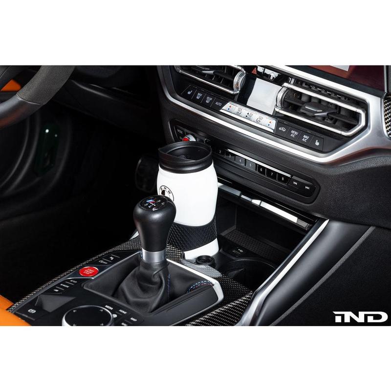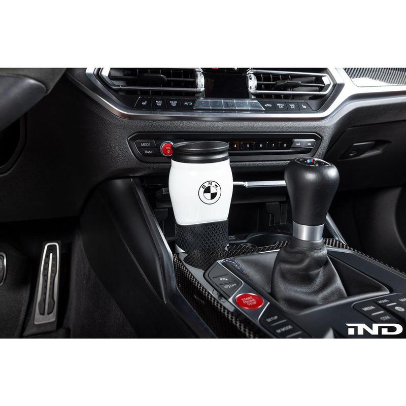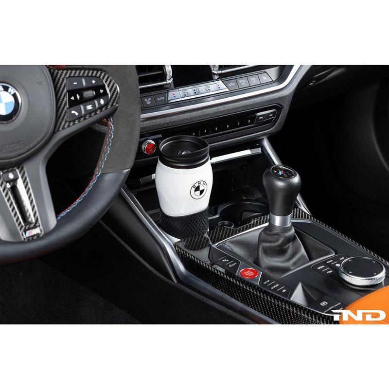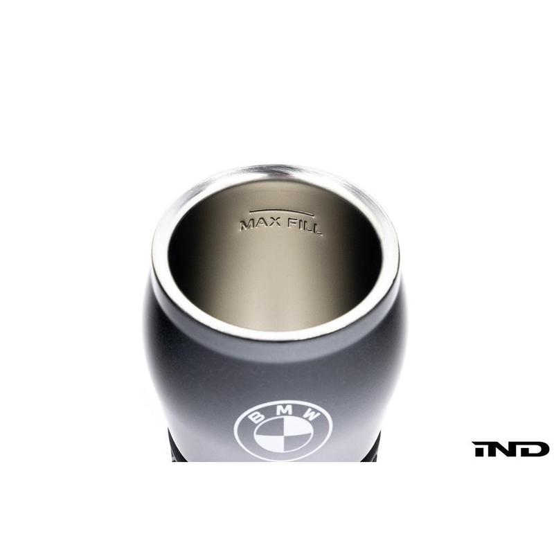 Genuine BMW 16oz vacuum insulated tumbler with premium 18/8 stainless shell. Push on / Pull off lid with raised lip drinking area and a splash proof open and close slider. Textured silicone grip enhance the look and feel.