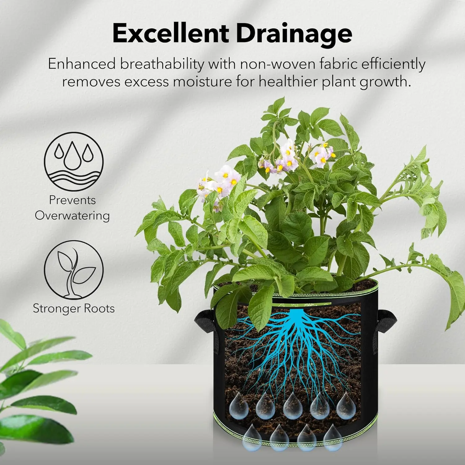These grow bags are very well made, sturdy, and thoughtfully designed. The material feels durable yet breathable, helping plants grow strong and healthy. They are washable and reusable, making them a practical and sustainable choice for gardening season after season. The size is generous and works beautifully for vegetables, flowers, or herbs, and they hold their shape well while still being easy to move when needed. Overall, they perform exactly as hoped and make gardening more organized and enjoyable. See video. We truly recommend this product.