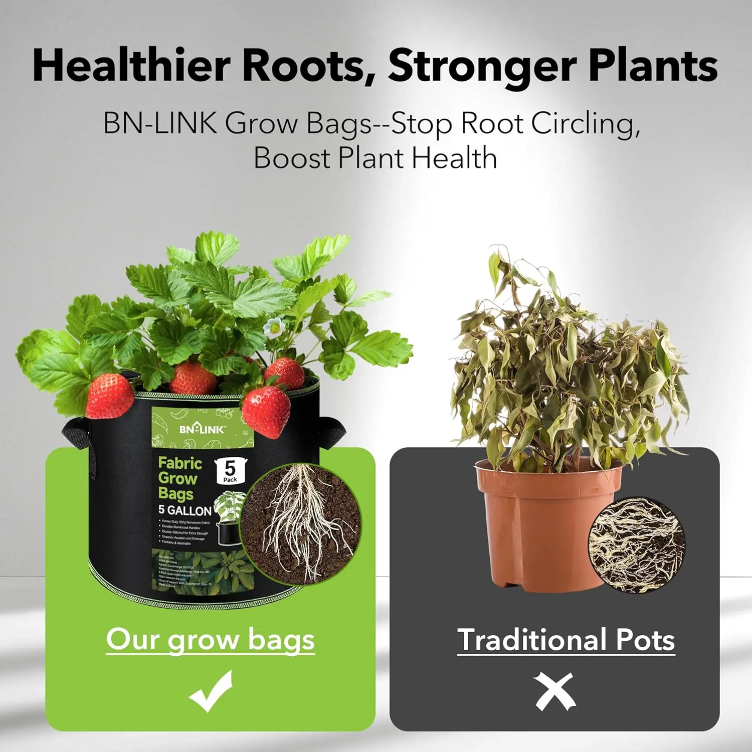 These grow bags have been such a great addition to my garden that this is now my second set. They are very well made and hold their shape nicely even when filled with heavy soil. The breathable material helps plants grow strong and healthy, and the sturdy handles make moving them around easy. They are reusable, easy to clean, and perfect for growing vegetables, herbs, or flowers. Overall, a reliable and practical choice for anyone looking for a simple, space-efficient gardening solution.