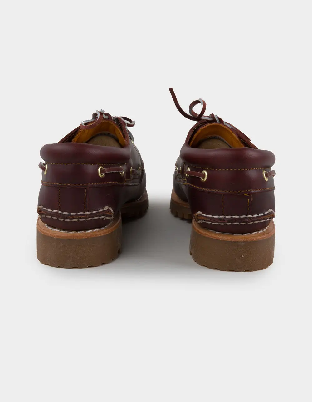 Timberland Authentics 3-Eye Boat Shoes. In 1978, Timberland took premium leathers, used hand-stitching, and crafted 3-eye boat shoe uppers that we combined with our rugged boot lug outsole. It was at that moment, the 3-Eye Lug Handsewn boat shoe was born. Upper made with Premium Timberland® Leather. 360° functional lacing system. Leather lining. 3/4-length leather-lined footbed. Traditional handsewn construction. Rubber outsole. Imported.