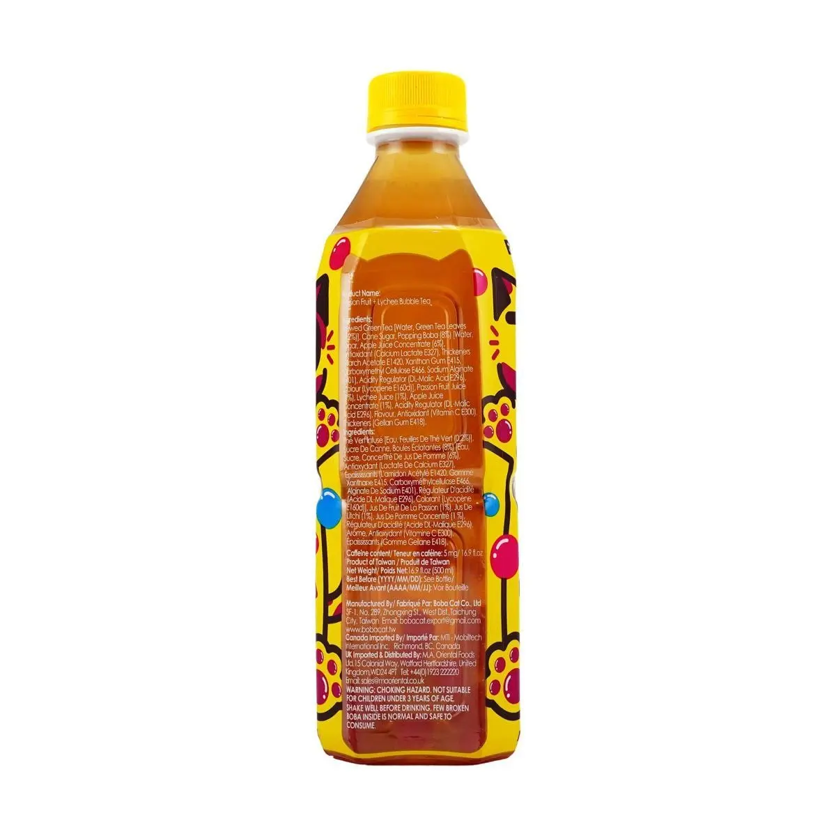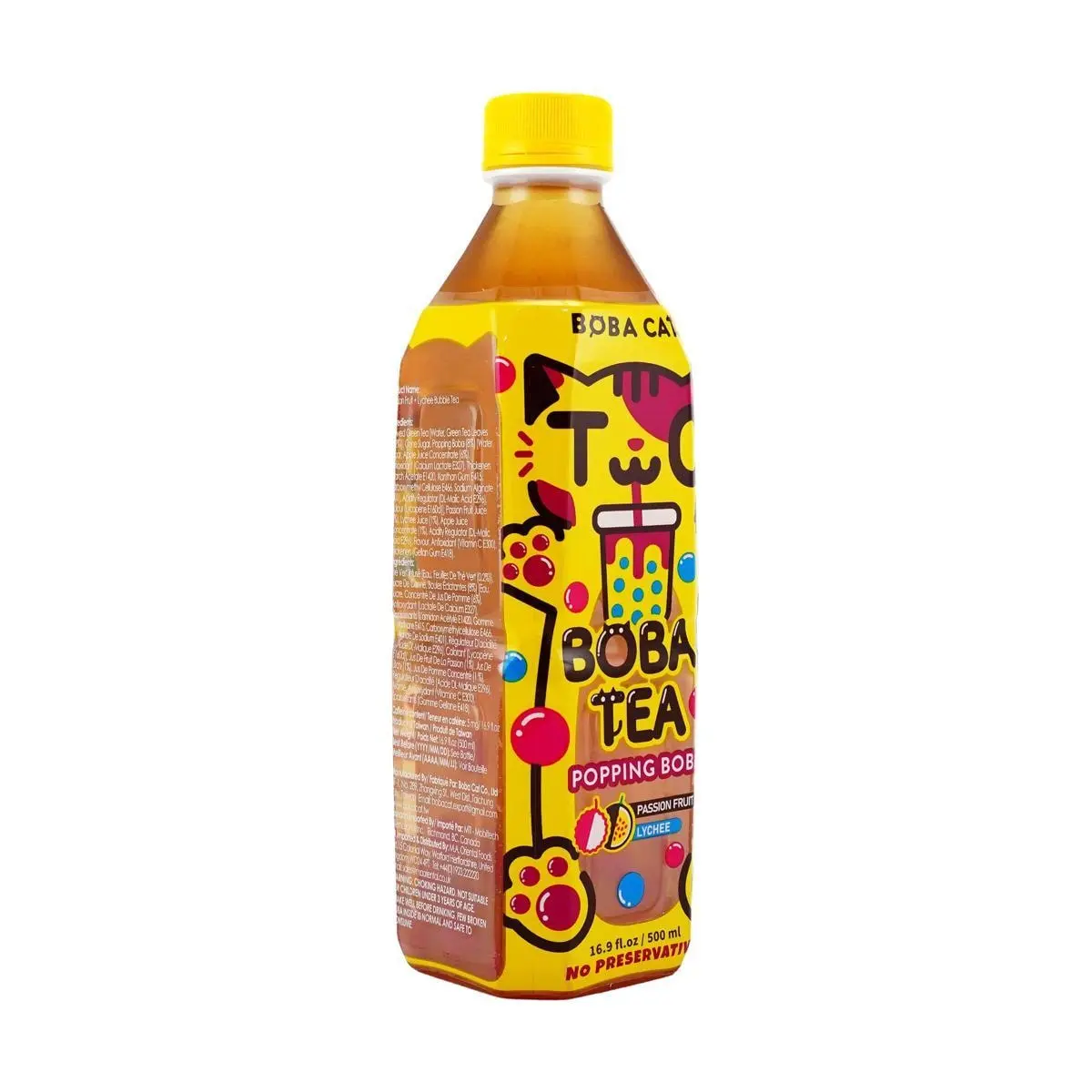 5. BOBACAT Passion Fruit Lychee Burst Tea 500ml - Refreshing Fruit Drink with Tapioca Pearls