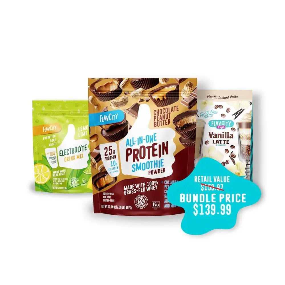 Bring home the ultimate trio handpicked by Bobby himself—crafted for flavor, function, and everyday convenience. The Bobby’s Favorite Flavors Bundle combines three fan-favorite essentials that fuel your day from morning to night: a rich and creamy protein smoothie, a refreshing electrolyte mix, and a coffeehouse-quality latte. Each one delivers real ingredients, real taste, and zero compromise.