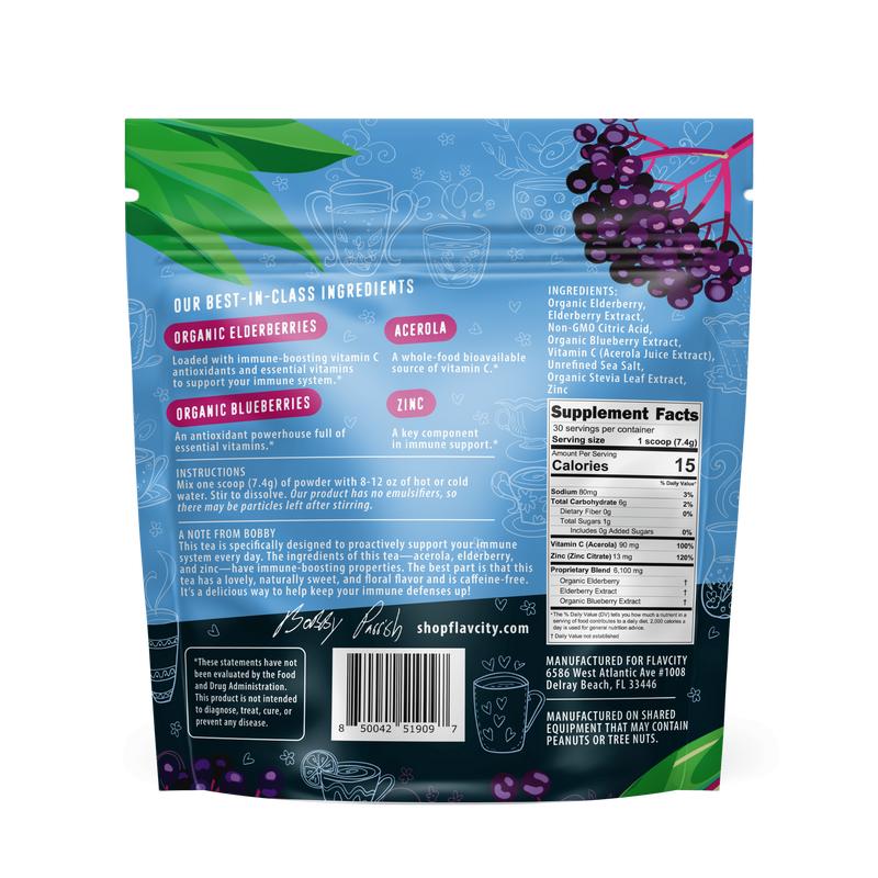 Immunity Tea – Elderberry keeps your defenses on lock with a delicious boost of elderberry, zinc, and acerola — so you can stay ready for anything (and everything).