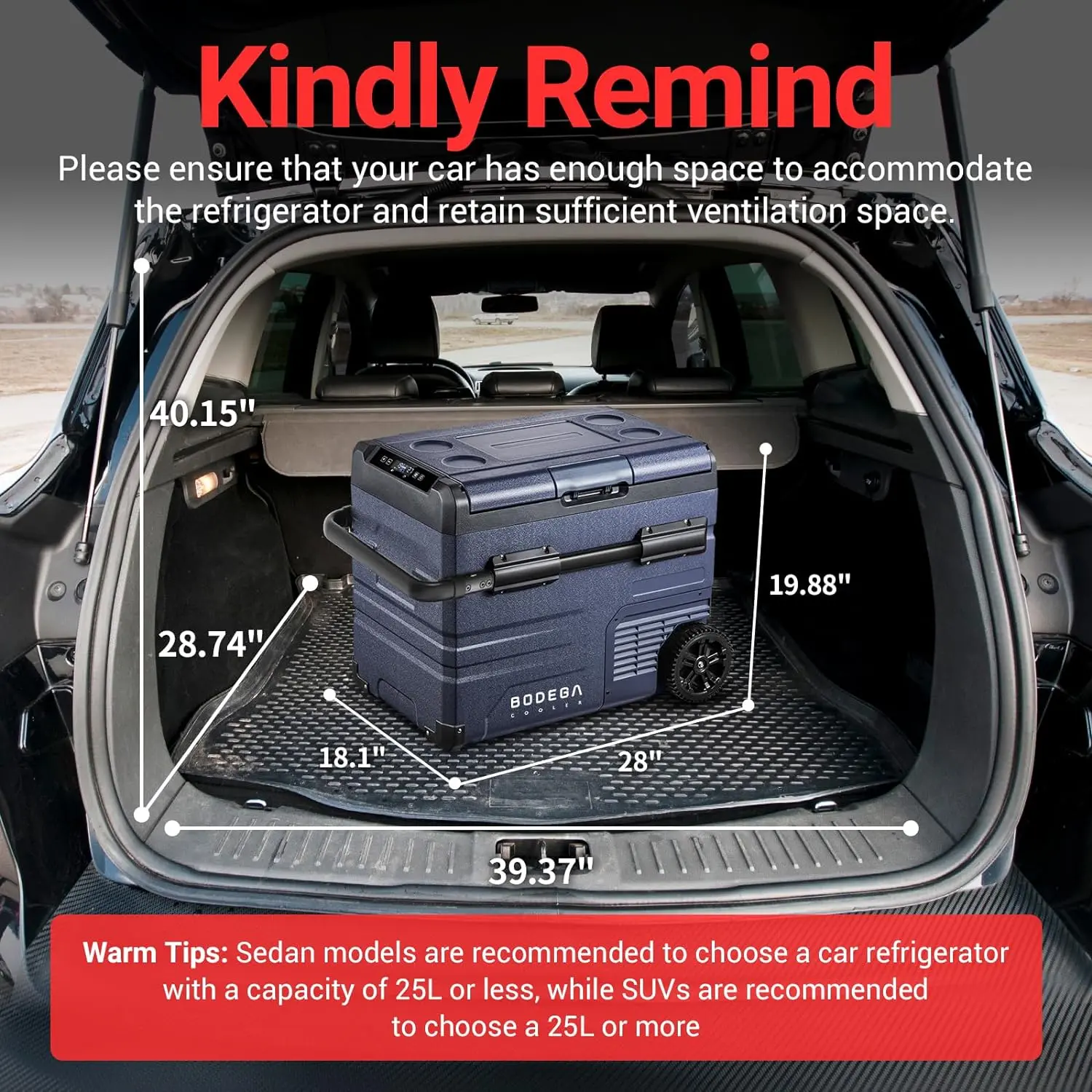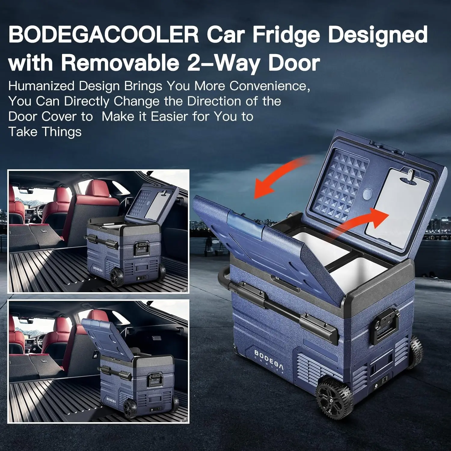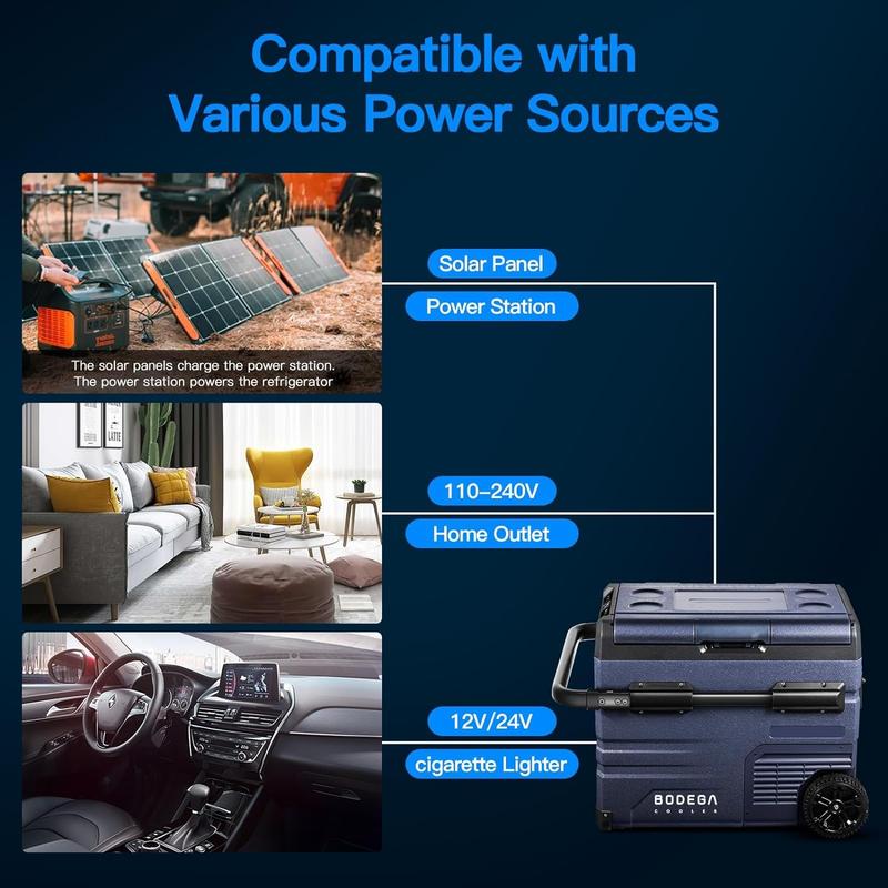 ·DUAL ZONE AND WIFI APP CONTROL CAR FRIDGE: BODEGACOOLER 12Volt refrigerator is equipped with two zone, the two zones can be independently controlled for temperature.Left zone 32L (34.04 Quart) + right zone 13L (13.82 Quart) = 45L (48 Quart). This powerful rv fridge can hold 66cans cola, or 37 bottles water or 12 bottles red wine.It's up to you to decide which side to use as the freezer zone or fridge zone. Our car portable refrigerator support WIFI App or manual control. (For android and ios)
