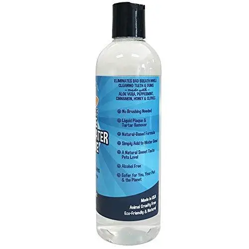 Maintain optimal oral health easily and keep bad breath at bay! If you don't love our Dental Water, we offer a 100% money-back guarantee. Try it and welcome your pup's kisses!