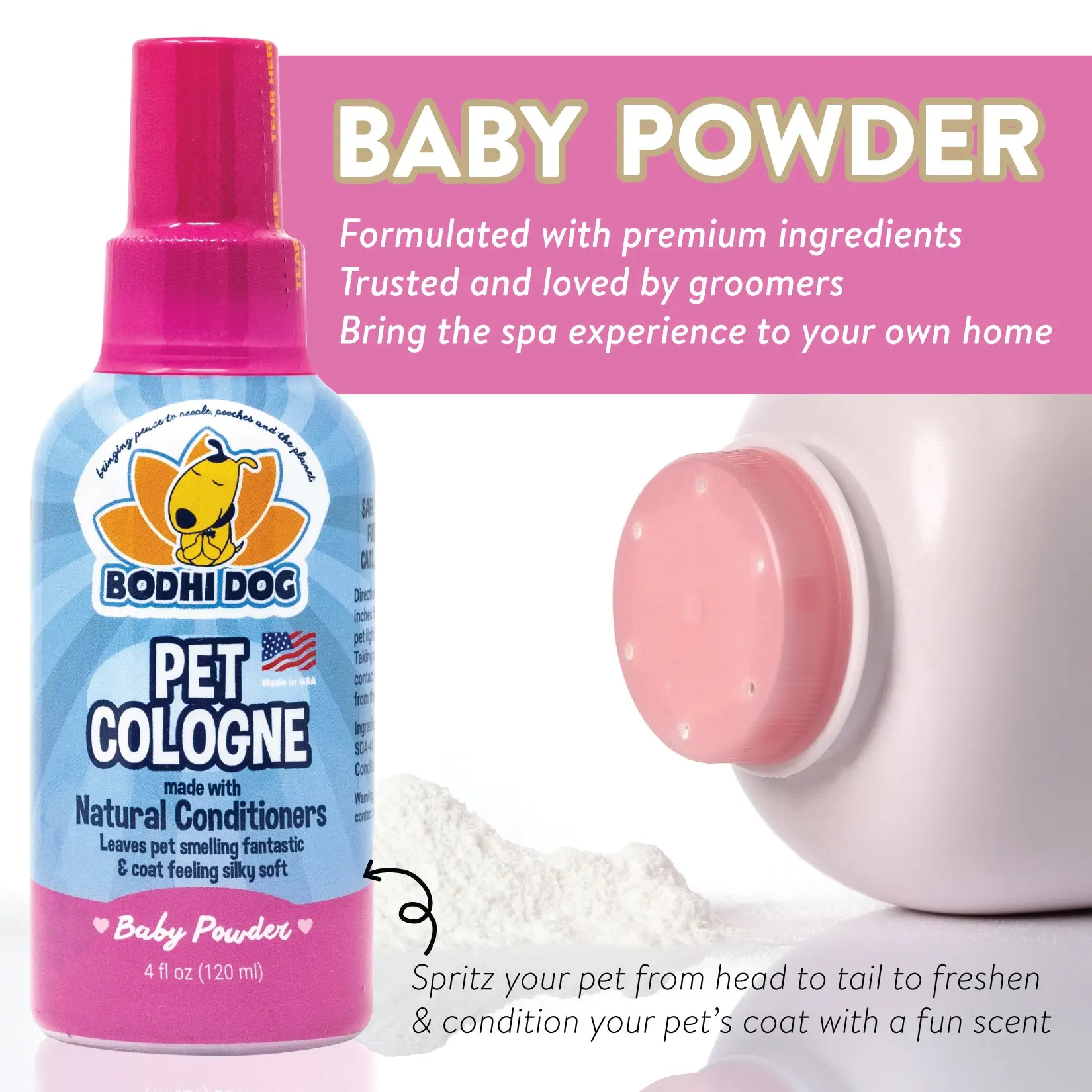 Bodhi Dog is a small, family-owned business in Austin, Texas. We create safe, effective, eco-conscious pet products. Our Colognes are proudly crafted in the USA using sustainable, cruelty-free practices and recyclable packaging. Our mission: premium, easy pet care solutions.