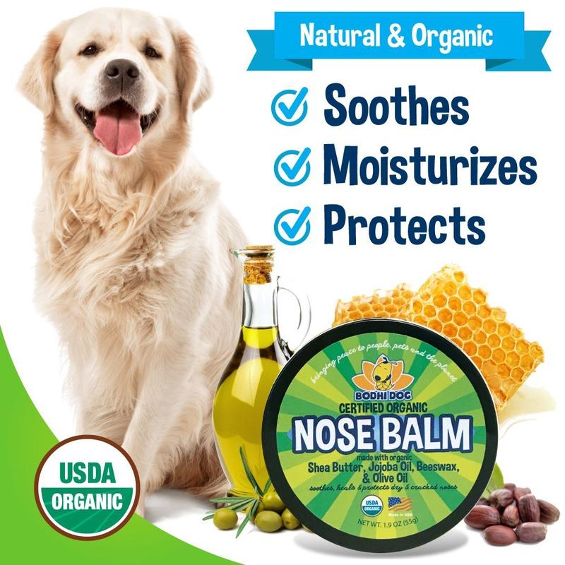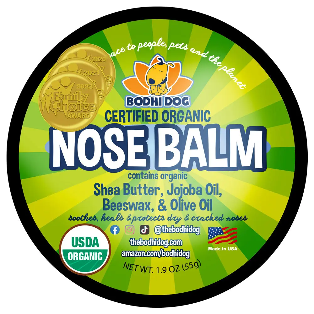 Dry, cracked, or rough noses hurt pets. Our Organic Nose Balm provides fast-acting relief. It soothes irritated, chapped noses, absorbing quickly to relieve irritation and restore moisture. With only six simple organic ingredients, both you and your pet will love it!