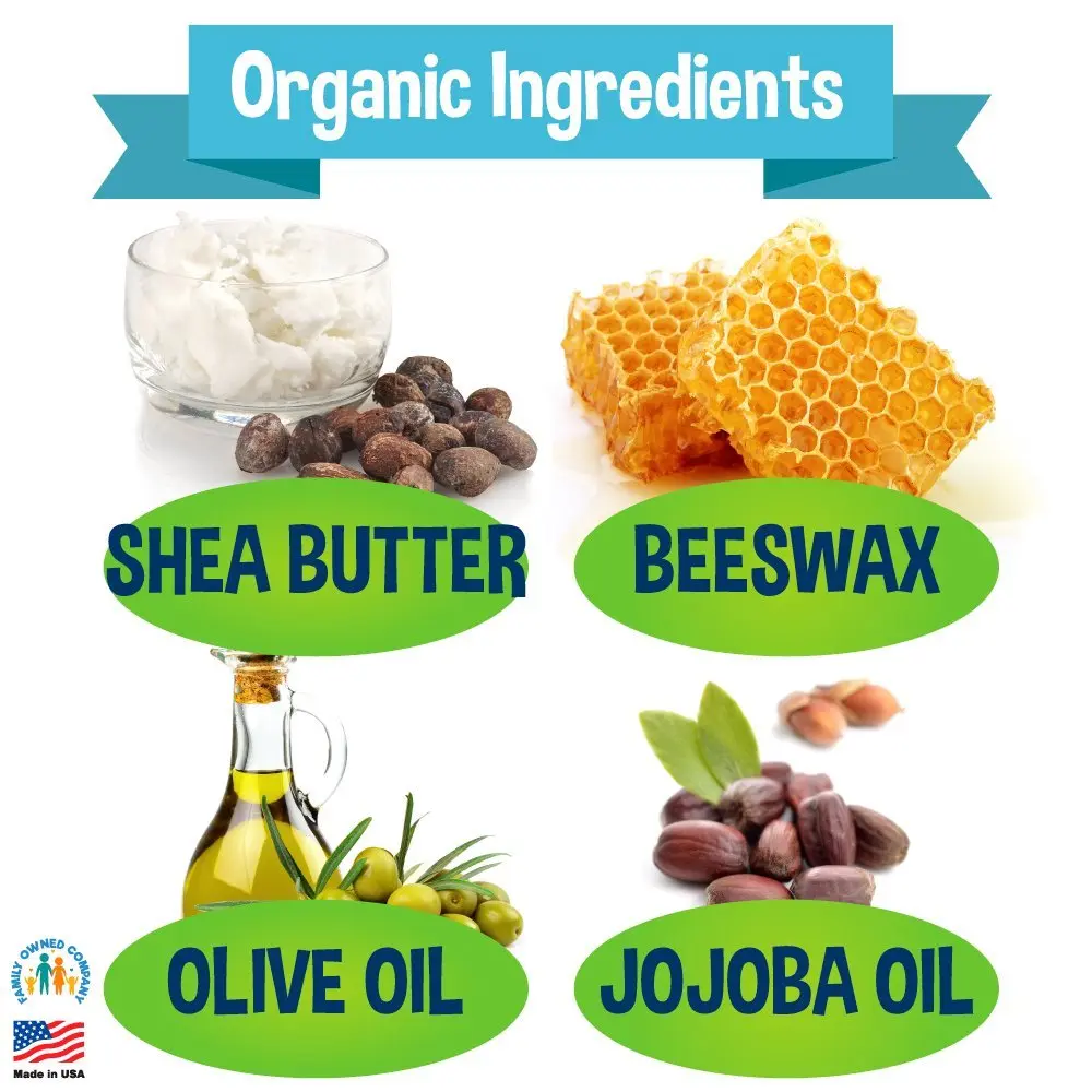 Organic Shea Butter, Organic Jojoba Oil, Organic Calendula Extract, Organic Beeswax, Organic Rosemary Extract