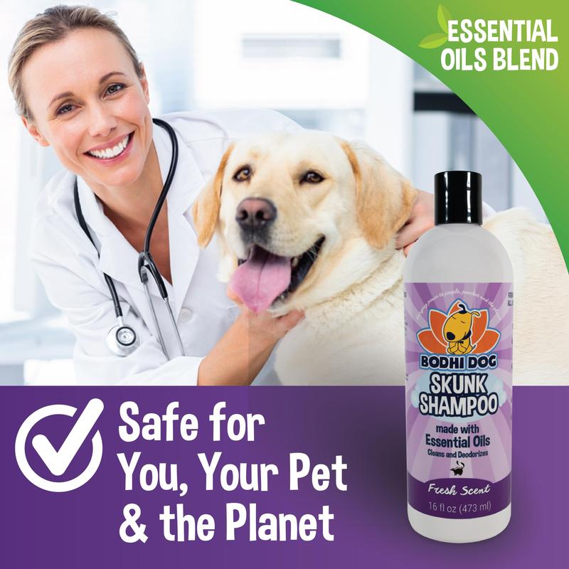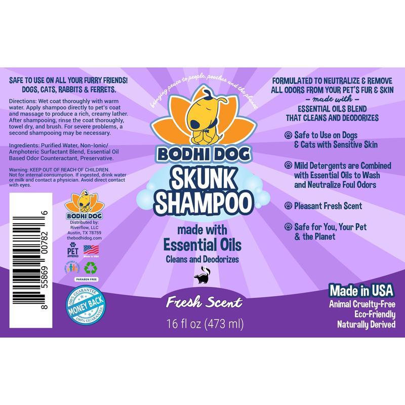🐾 Bodhi Dog Skunk Shampoo Eliminate skunk and other tough odors from your pet with our Skunk Shampoo! This natural formula cleans without harshness or over-drying. It uses a proprietary blend of essential oils that are gentle on skin, leaving a delightfully pleasant, fresh scent. Key Features: • Powerful Odor Elimination: Effectively removes skunk and other stubborn pet odors. • Gentle & Non-Drying: Cleans thoroughly without being harsh or overly drying on your pet's coat. • Natural Formula: Contains a proprietary blend of essential oils. • Safe for Sensitive Skin: Does NOT contain harsh chemicals, making it safe for pets with sensitive skin. • Pleasant Scent: Leaves behind a delightfully pleasant, fresh scent after washing. Ingredients: Water, Non-Ionic/Amphoteric Surfactant Blend, Essential Oil Based Odor Counteractant, Preservative. Bodhi Dog is a small, family-owned business based in Austin, Texas, and dedicated to creating safe, effective, and eco-conscious pet care products. Our Shampoos are proudly crafted in the USA using sustainable, cruelty-free practices and recyclable packaging. Our mission is to offer premium solutions to easily care for your furry family members. Say goodbye to stinky pet odors! If you're not completely satisfied with our Skunk Shampoo, we offer a 100% money-back guarantee. Your pet will smell amazing with our premium odor-control shampoo!