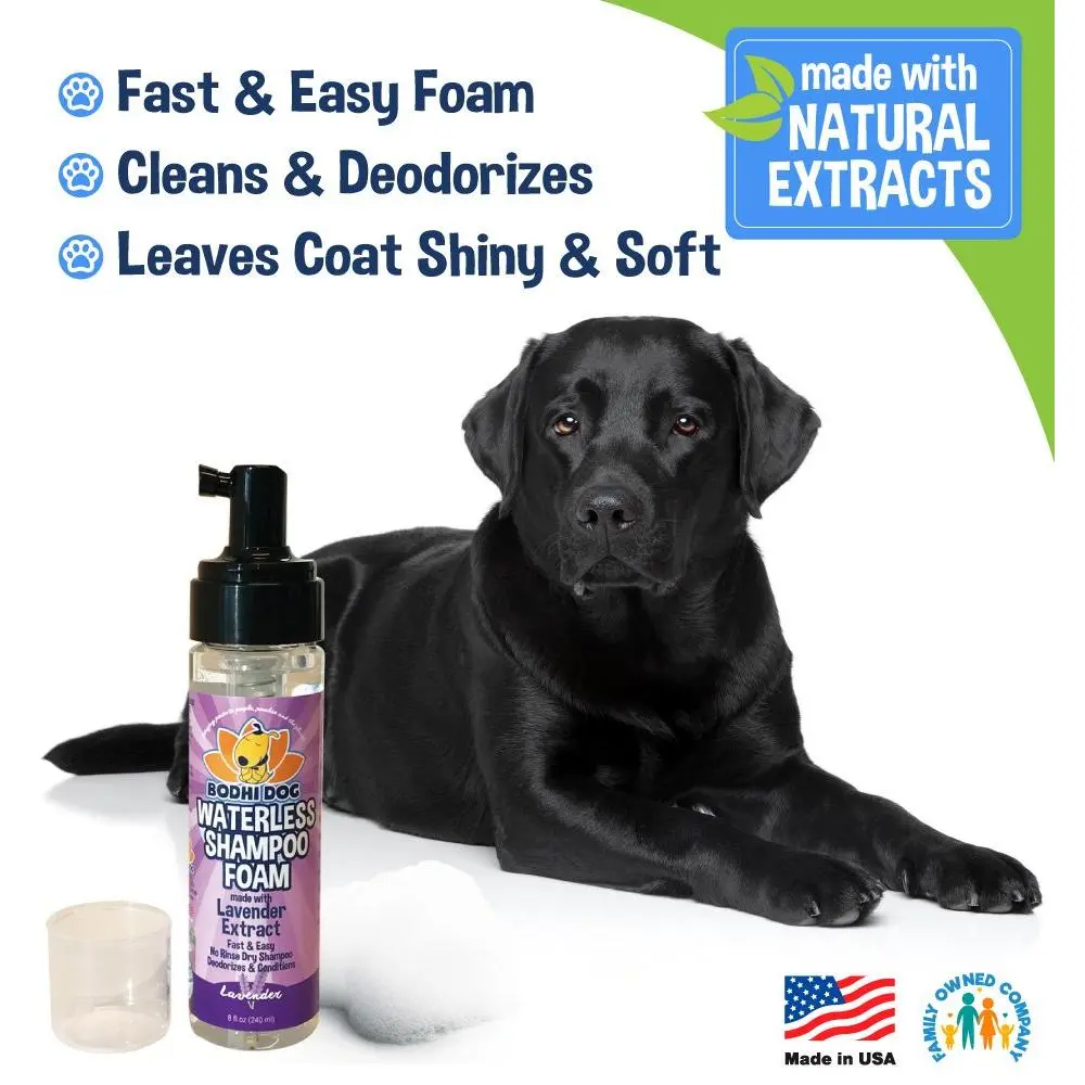 No time for a bath? Our Bodhi Dog Lavender Waterless Foaming Dry Shampoo is the perfect solution for a quick and effective clean! It's gentle on sensitive skin, leaving your pet's fur smelling great and feeling soft, with no rinsing required.