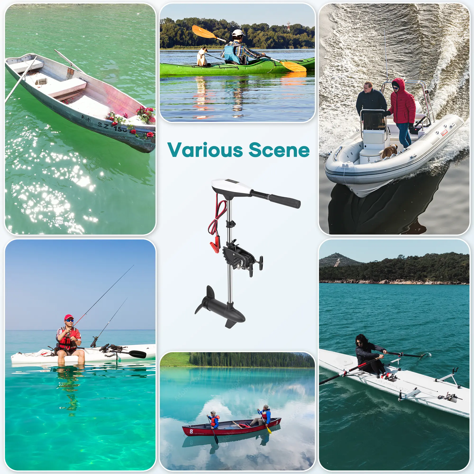 ·55Lb Thrust & Quiet Operation: This trolling motor provides 55 lbs of thrust (approx. 0.48 HP - 0.83 HP), enabling smooth, efficient navigation across conditions. Suitable as a boat outboard motor or kayak motor, it operates with minimal noise. Designed to help reduce overheating during extended fishing, cruising, or exploring trips