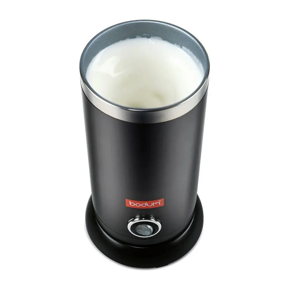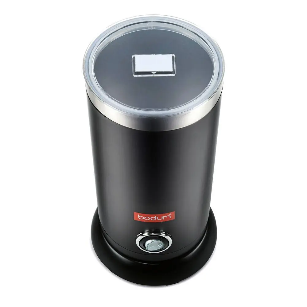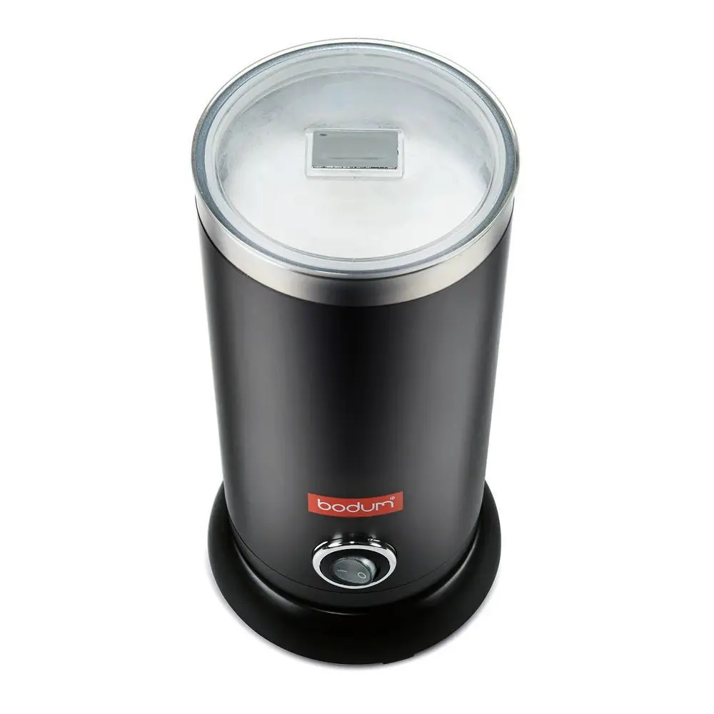 The Bodum Bistro Electric Milk Frother lets you prepare the perfect cup of cappuccino at home. Boasting a heavy-duty motor, this frother delivers luxuriously thick, creamy, and long-lasting milk froth for your favorite cafe-inspired drinks. Compact design, removable base with cord storage. Non-stick interior, stainless steel body, clear Tritan lid. Our Bistro milk frother was designed to make you a professional Barista without leaving your doorstep. Along with its sleek design tis premium frother also features auto shut off when finished; Its transparent lid allows the frothing to be observed.