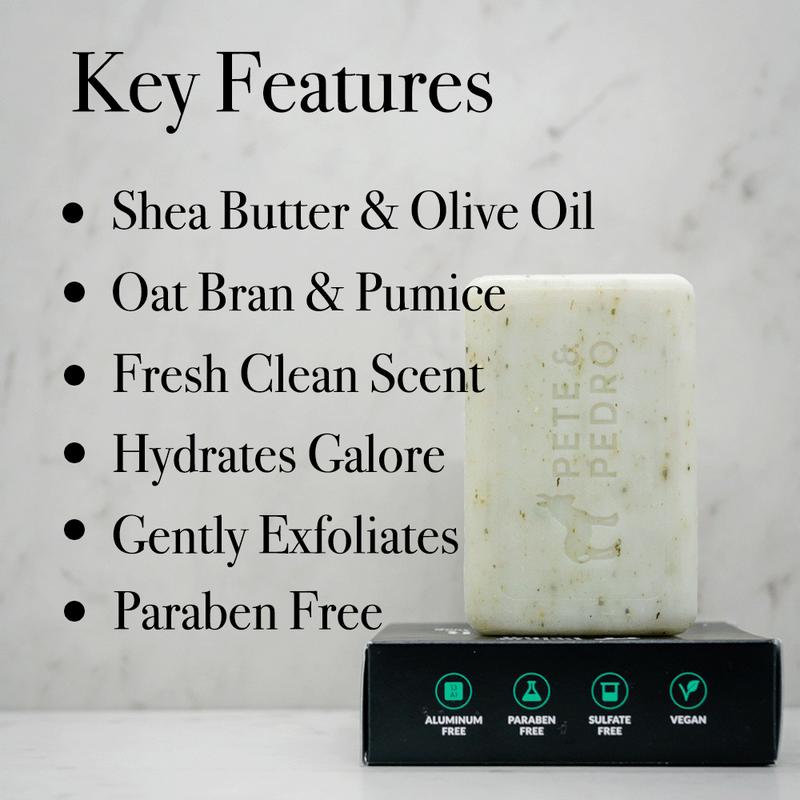 Pete & Pedro FRESH Natural Hydrating & Light Exfoliating Body Bar Soap – Deep Cleanse, Smooth Hydrated Skin, Fresh Scent