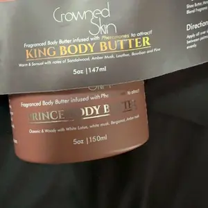 • Intense Moisturization: Locks in moisture for soft skin.• Skin Nourishment: Provides essential nutrients for health.• Soothing Effects: Leaves skin calm and rejuvenated. Imbued with shea and mango butter, this body butter nourishes your skin, leaving you with a royal fragrance and enhanced aura.