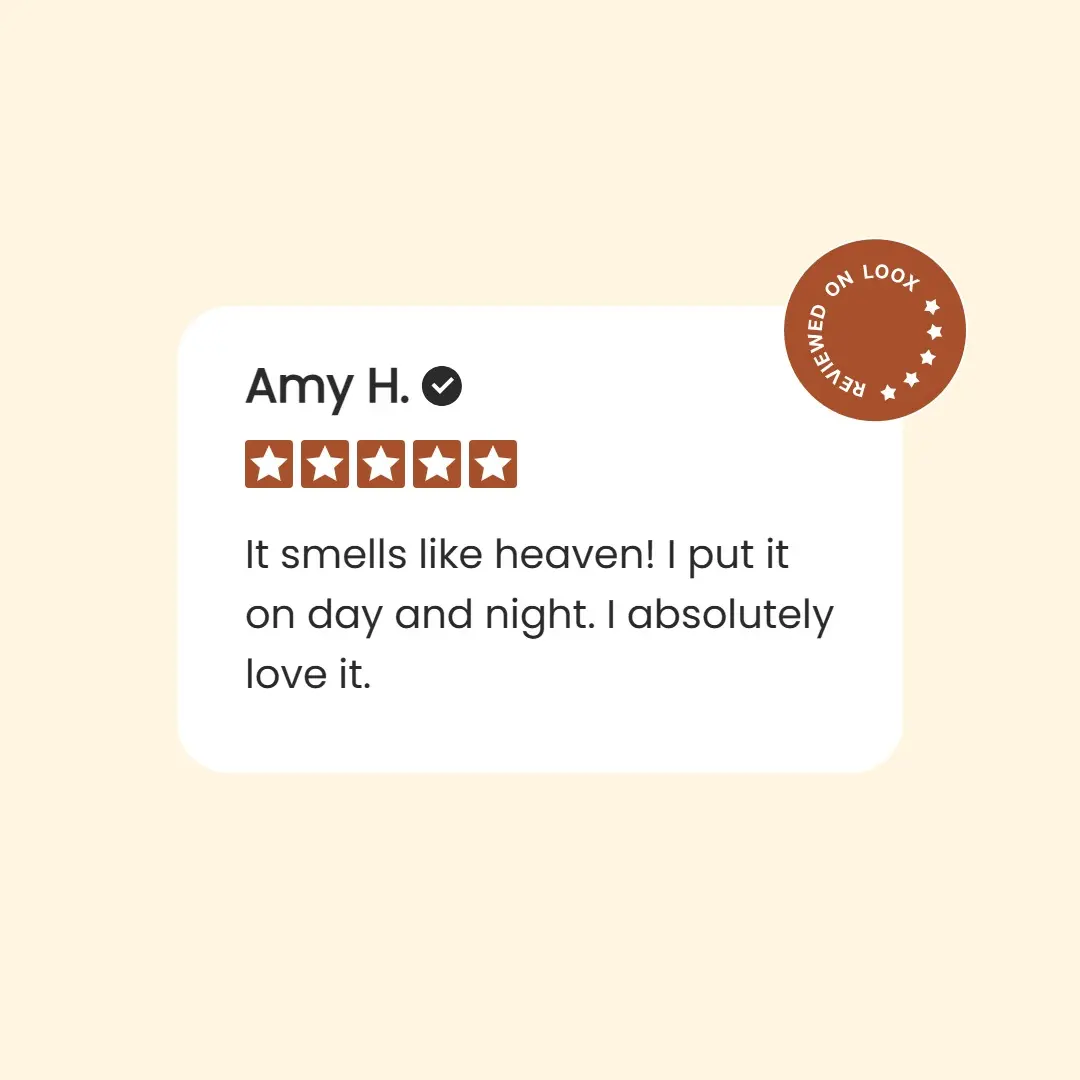 Base notes: Golden Amber, Soft Vanilla, Musk