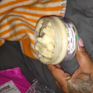 I received my package opened it and it was greasy. I pulled out a jar and it was greasy and had a hole dug out of it. I got another jar out and the same thing had happened. So I checked the rest and all were the same way a hole dug out, greasy and smelled fantastic. My rate is based on smell.